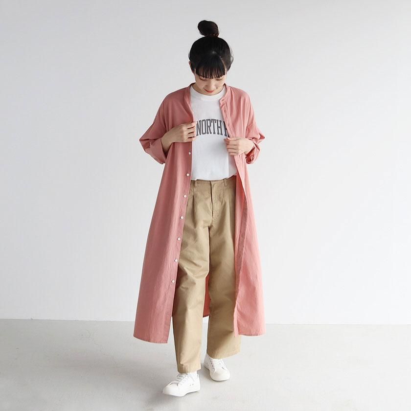 一見プルオーバーのようですが、胸元より比翼仕立てにデザインが切り替わります。フロントは前開きなのでワンピースとしてはもちろん羽織としても◎着回し力抜群でスタイリングに困ったときにも安心です。