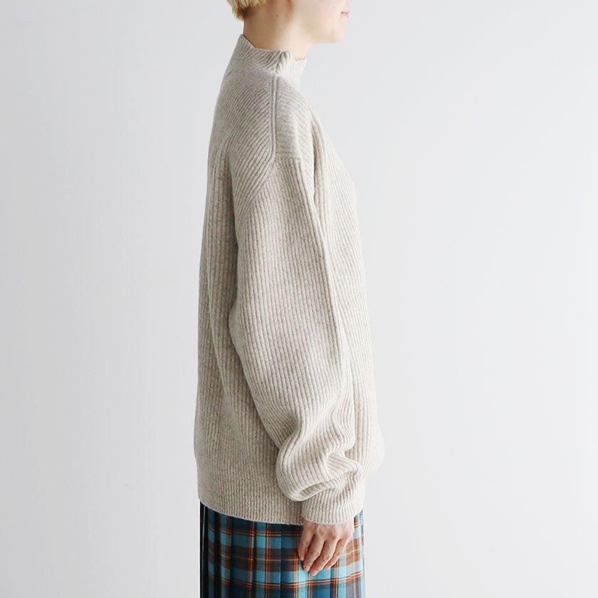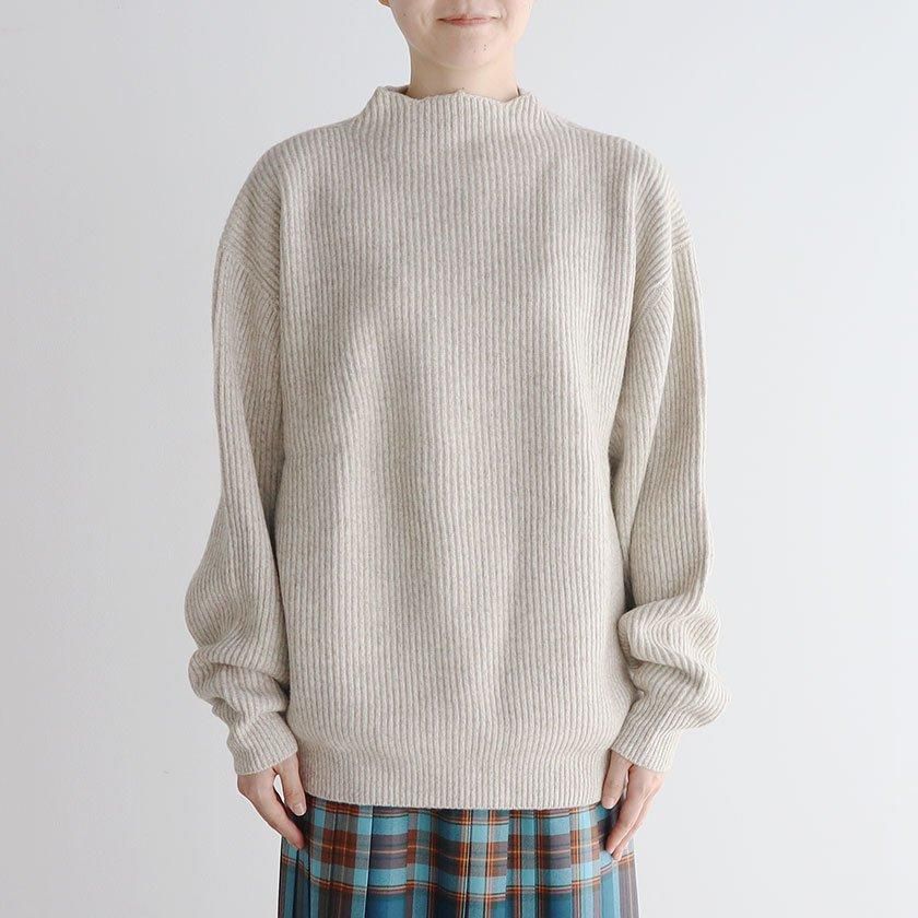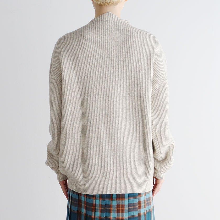 上質なヤクウールを贅沢に使用し、畦編みで仕立てた一着。生地に使用しているのは、紡績から編みまで全ての工程を内モンゴルの牧場にて一貫生産する国内ニットファクトリーと共同で開発したブランドオリジナル素材。隙間が見えないほどに細かく編み込まれたニットは、独特のぬめりのある質感でチクチク感の少ないなめらかな肌触りが特徴です。しっかりとした肉厚な生地感で裏毛のスウェットにも負けないタフな仕上がりを実現しています。
