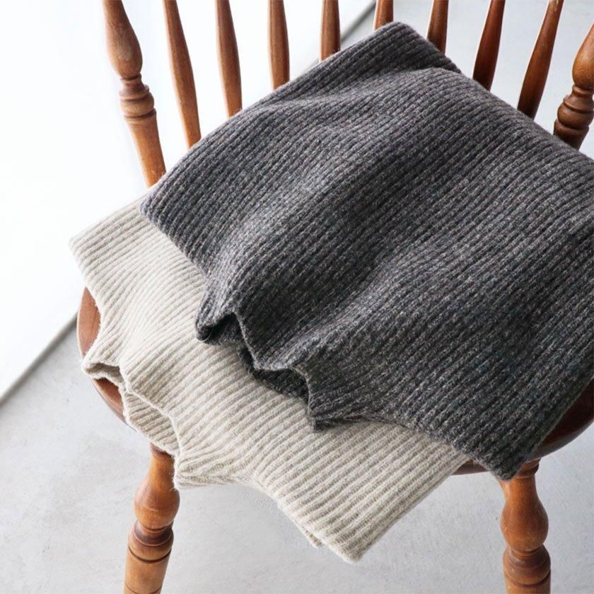 素材や形だけでなく、深みを感じるカラーもこだわりの一つ。既存のTOP糸に無染色のヤクを混ぜることにより、ナチュラルであたたかみのある色味を表現しています。落ち着いたトップグレーと、肌なじみの良いホワイトの2色展開です。