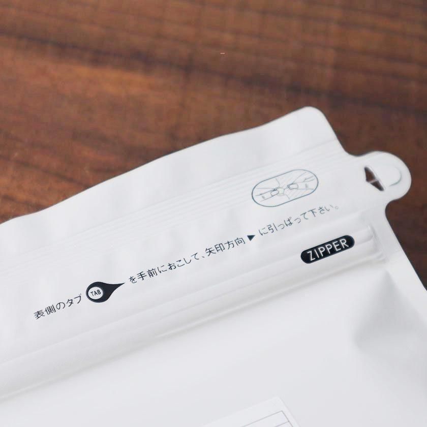 シンプルでおしゃれなパッケージ&ロゴデザインはギフトとしてもオススメ。チャック付きパッケージのため、開封後もチャックを閉めて保存可能なのも嬉しいポイントです。