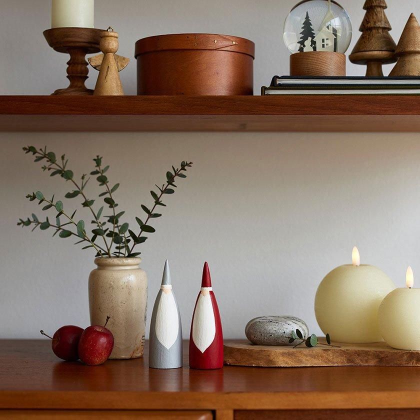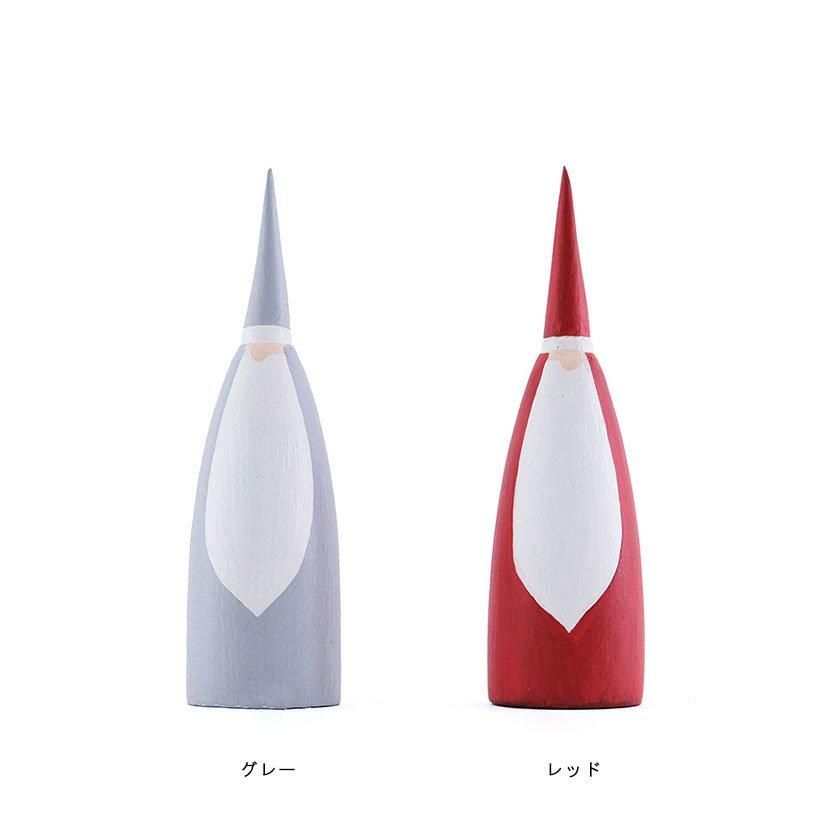 サンタといえばの定番カラーのレッドとシックでクールな雰囲気のグレーの2色展開。明るすぎない色合いは、存在感がありながらも主張しすぎずインテリアにしっくり馴染んでくれます。手のひらに乗るほどの小ぶりなサイズ感も魅力の一つ。玄関やリビングのちょっとしたスペース、本棚の上など、飾る場所を選びません。