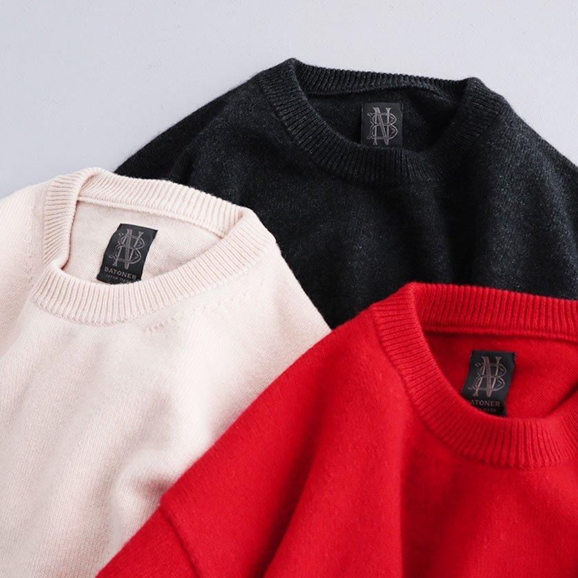 BATONER (バトナー)のイノセントシリーズより、上質なカシミヤを贅沢に使用したクルーネックニットのご紹介です。