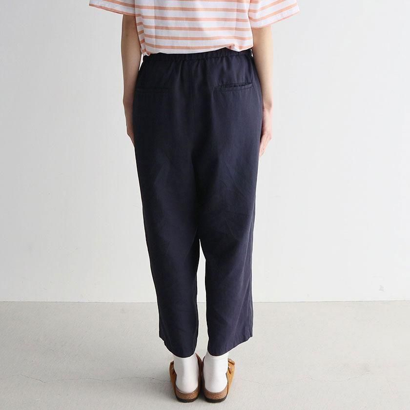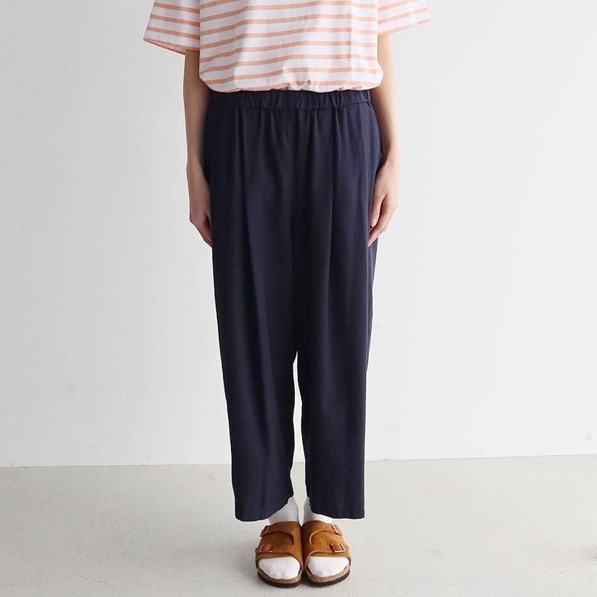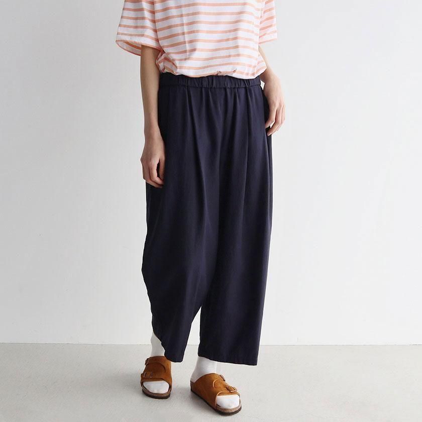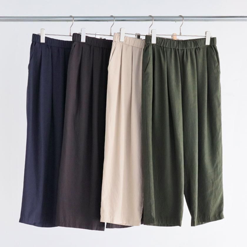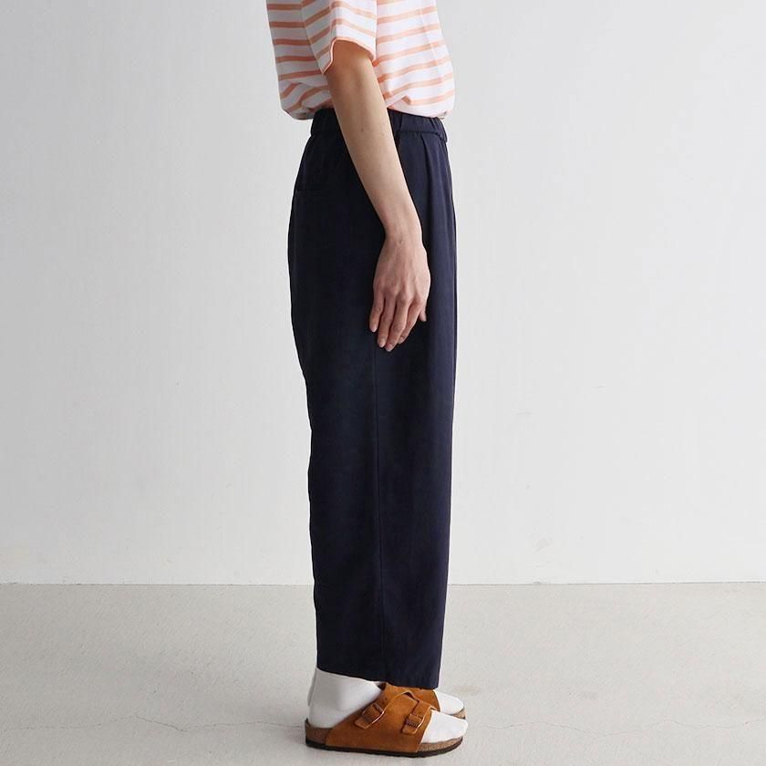 シルエットはゆったりとしたワイドタイプ。とろみのある生地とフロントに入ったタックが美しいドレープを生み、カジュアルからきれいめまで幅広いテイストにマッチします。