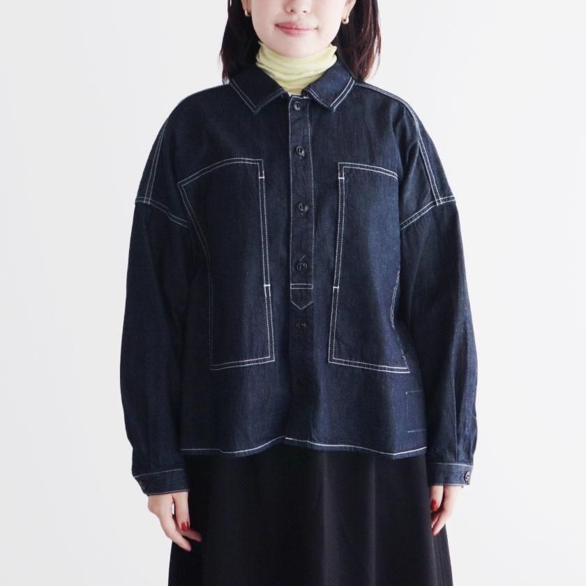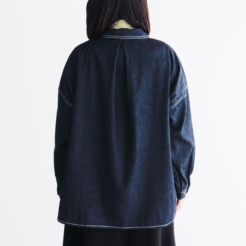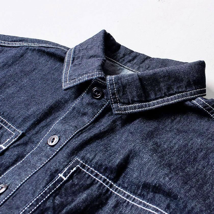 生地にはライトな7ozデニムを使用。重たくなりすぎず、気軽に羽織れる着心地で春夏はTシャツの上に合わせたり、冬場は上からジャケットやコートを羽織っても◎