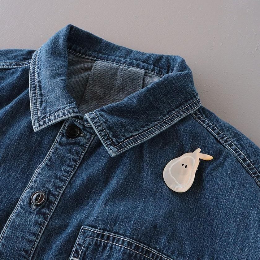 シェル素材ならではの色の移り変わりが美しく、見る角度によって変化する表情が魅力。ハンドメイドならではのあたたかみがあり、コーディネートに優しく可愛らしい印象をプラスしてくれます。お洋服だけでなく、帽子やバッグに付けたり、ストールを留めていただくのも◎