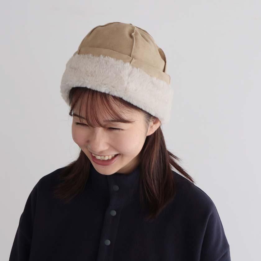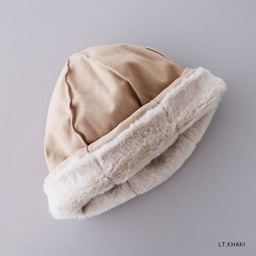 柔らかいふわふわのファーとスエード素材を組み合わせたシーズンムード高まるアイテム。コロンとした丸いシルエットとほどよいボリューム感はサッと被るだけで一気にこなれた印象が叶います。折り返しの幅を調整できるのでコーディネートや気分に合わせてお好みのバランスでお楽しみいただけますよ。
