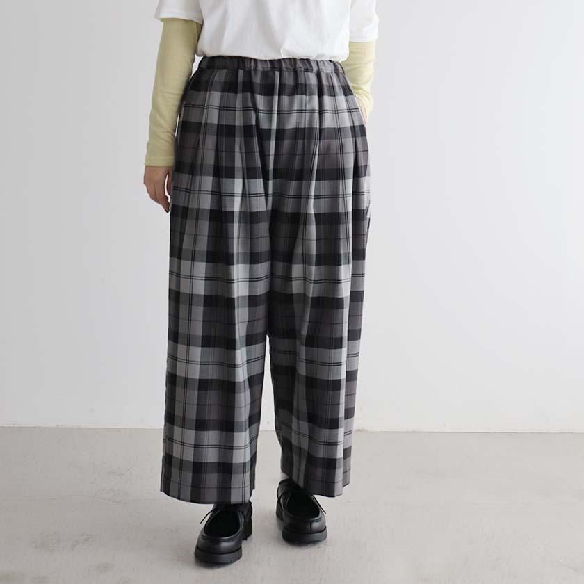 シックな配色が洗練された大人の装いを演出するSTAMP AND DIARY (スタンプアンドダイアリー)のチェック柄ワイドパンツのご紹介です。