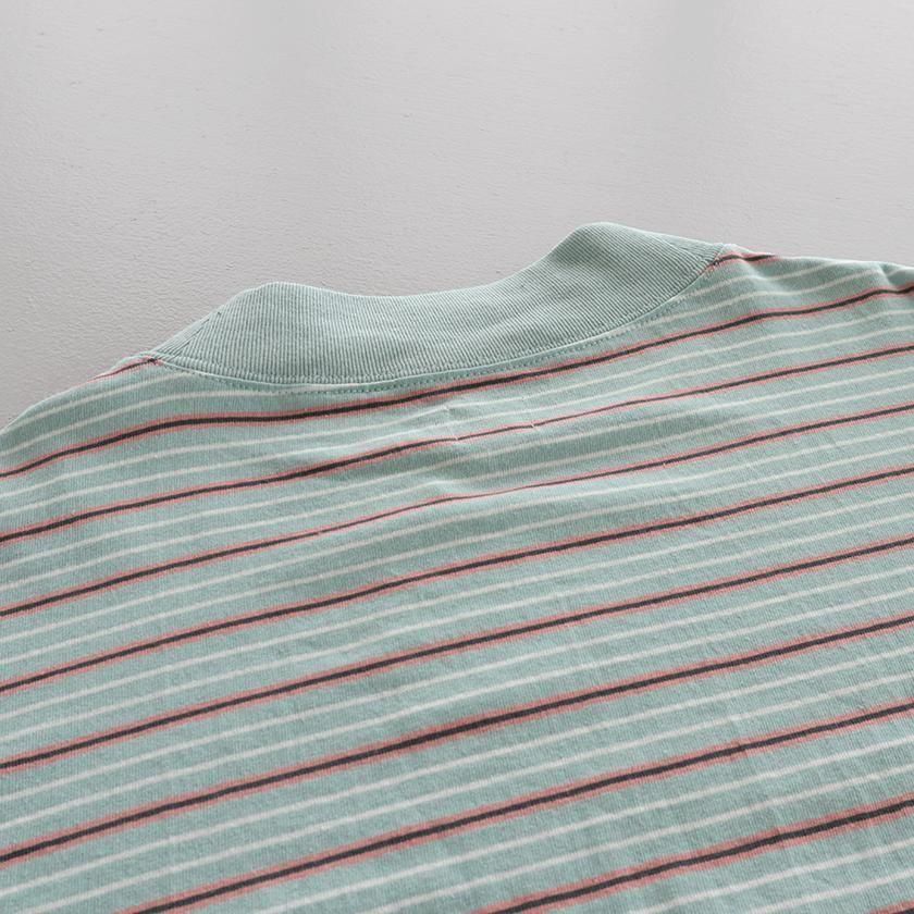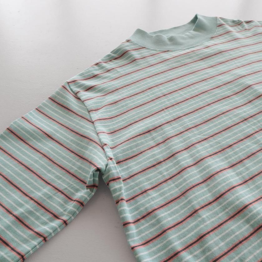 主役として一枚で楽しむのはもちろん、シャツやジャケット、オーバーオールなどのインナーアイテムとしても◎ 多色使いの配色がめずらしく、定番ボーダーはすでにお持ちという方にもオススメのアイテムです。
