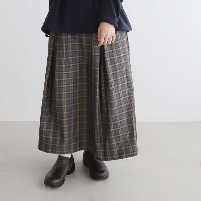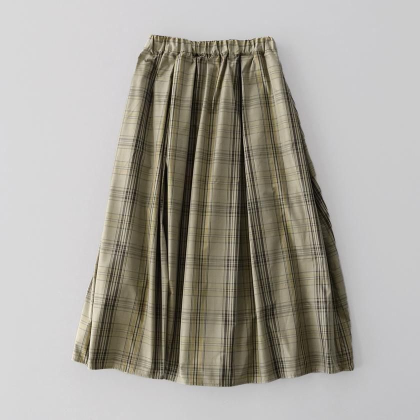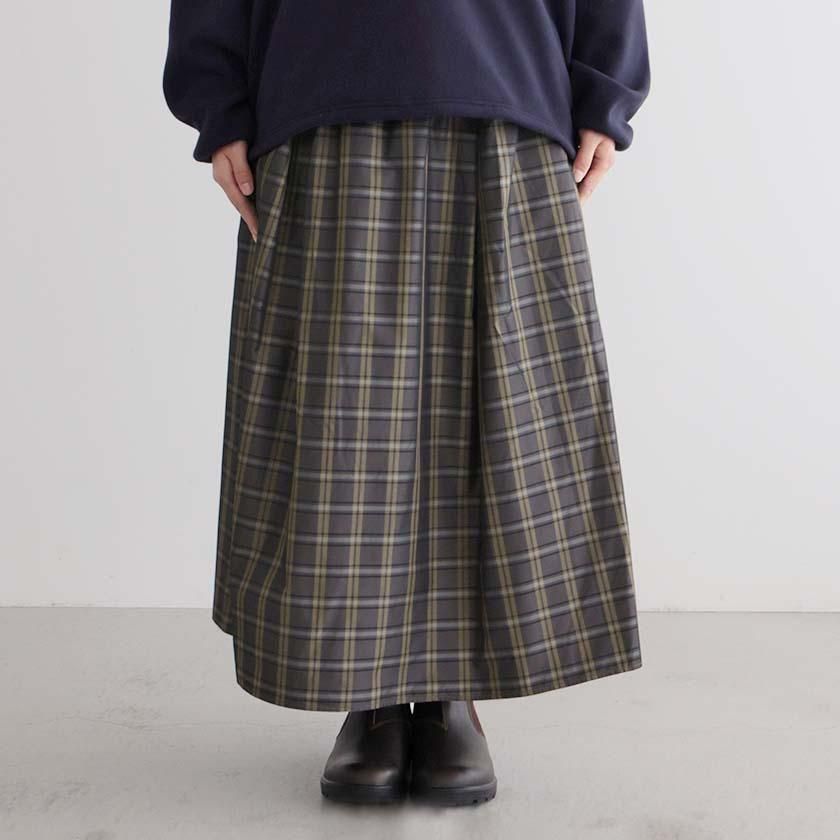 フロントにタックを入れることで表現した美しい縦長シルエット。ほどよいボリュームがありながらもタックが膨らみを抑えて、すっきりとしたラインを作り出しています。ウエストはストレスフリーな総ゴム仕様。ふくらはぎが見え隠れする絶妙な丈は、靴下やショートブーツを覗かせる足元コーデに最適です。