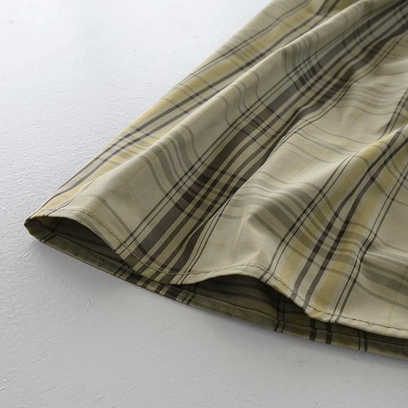素材は75デニールの形状記憶糸を高密度に織り上げたメモリーツイルを使用。控えめな光沢感となめらかな表面感が特徴で、適度なハリが立体的なシルエットを生み出します。裏地のない一枚仕立てですが、透け感を気にせず穿けるのも嬉しいポイント。ブランドオリジナルのチェック柄は存在感がありながらも派手になりすぎず、普段は柄物を身に着けない方にもオススメですよ。