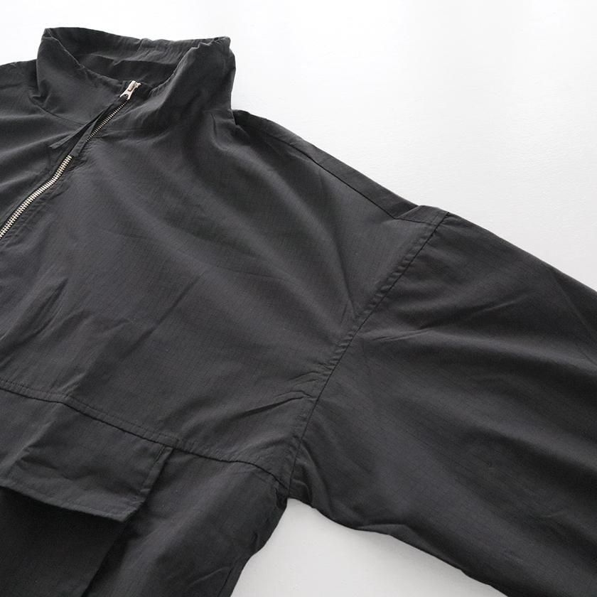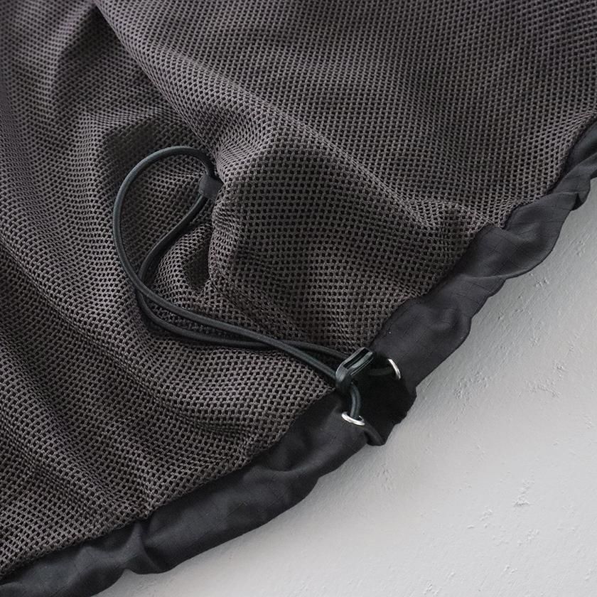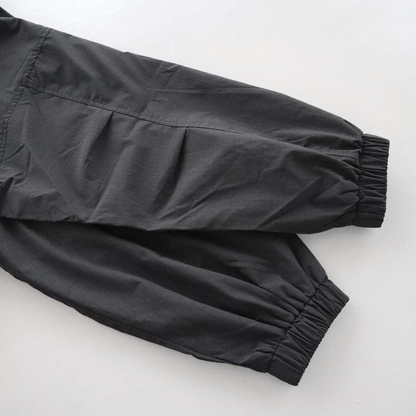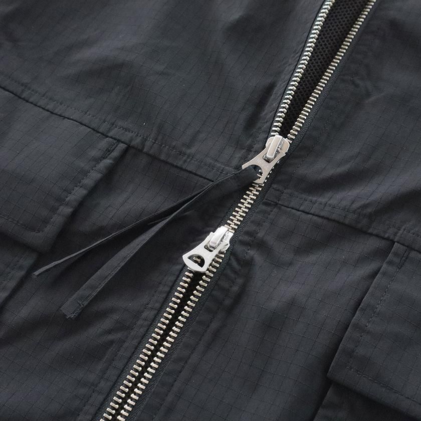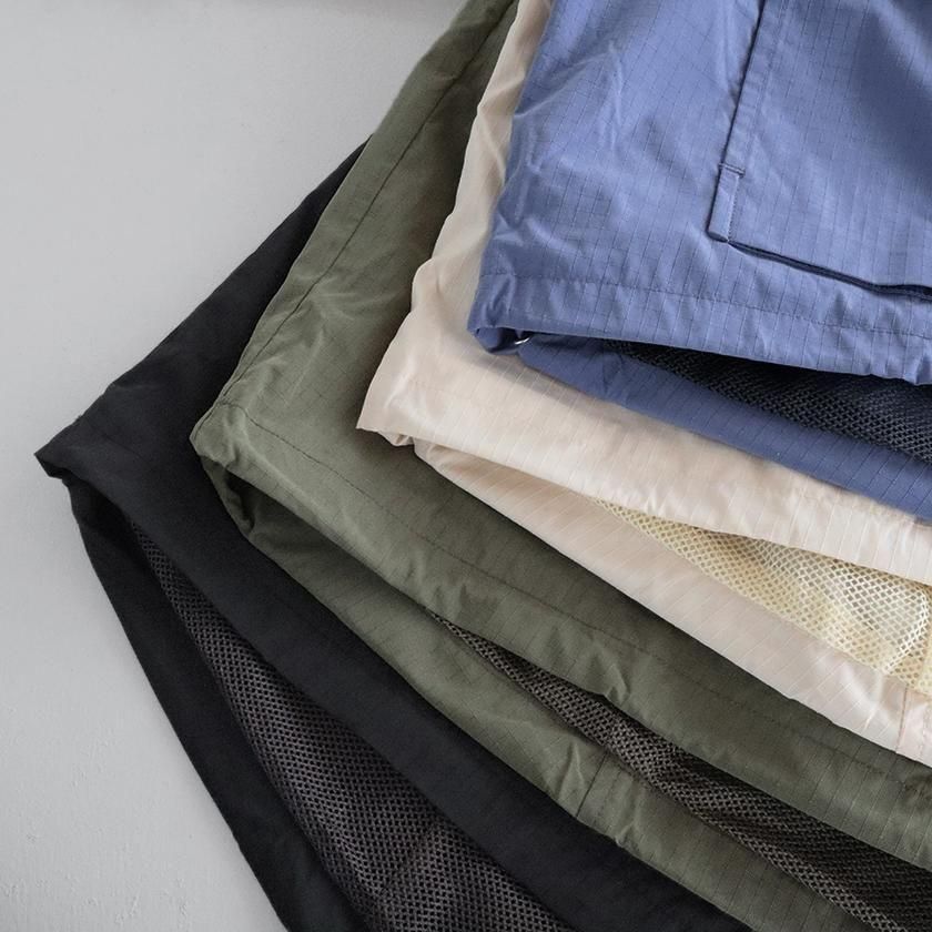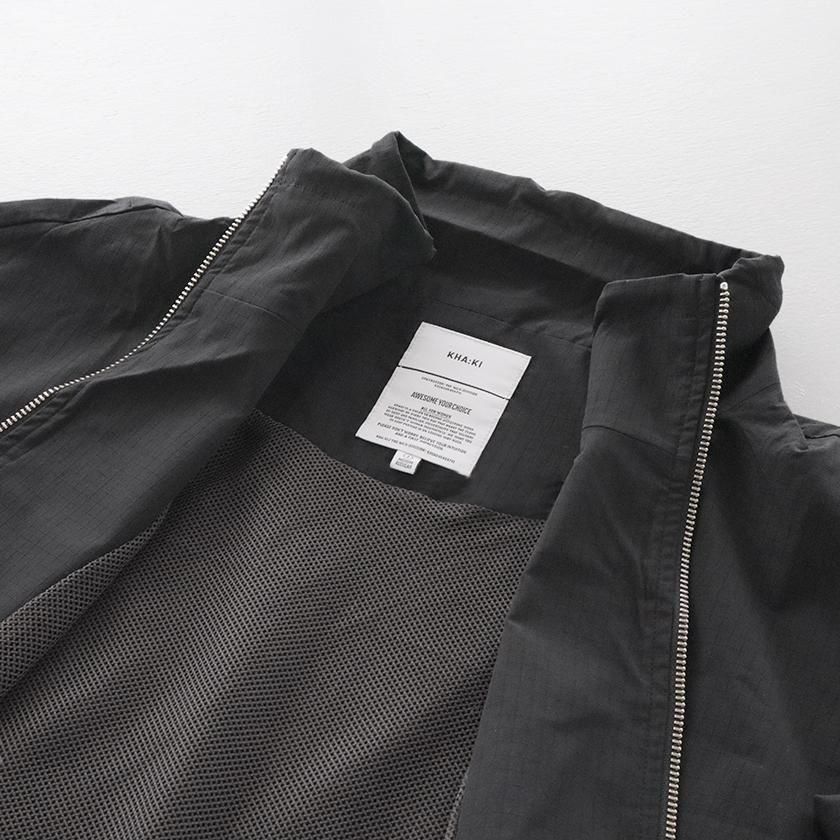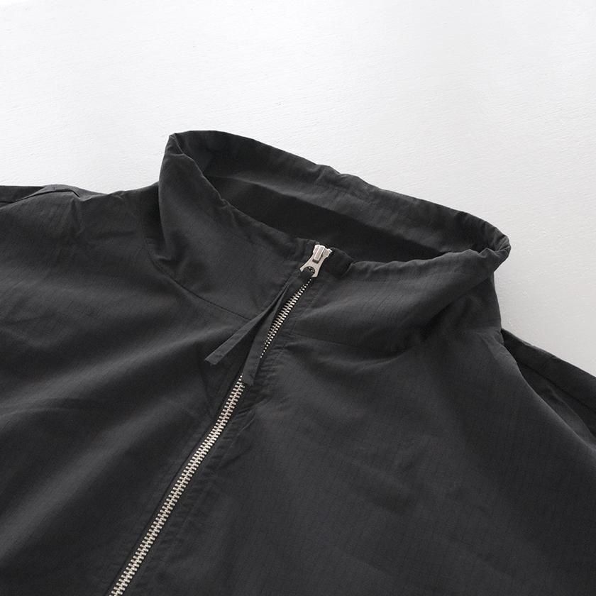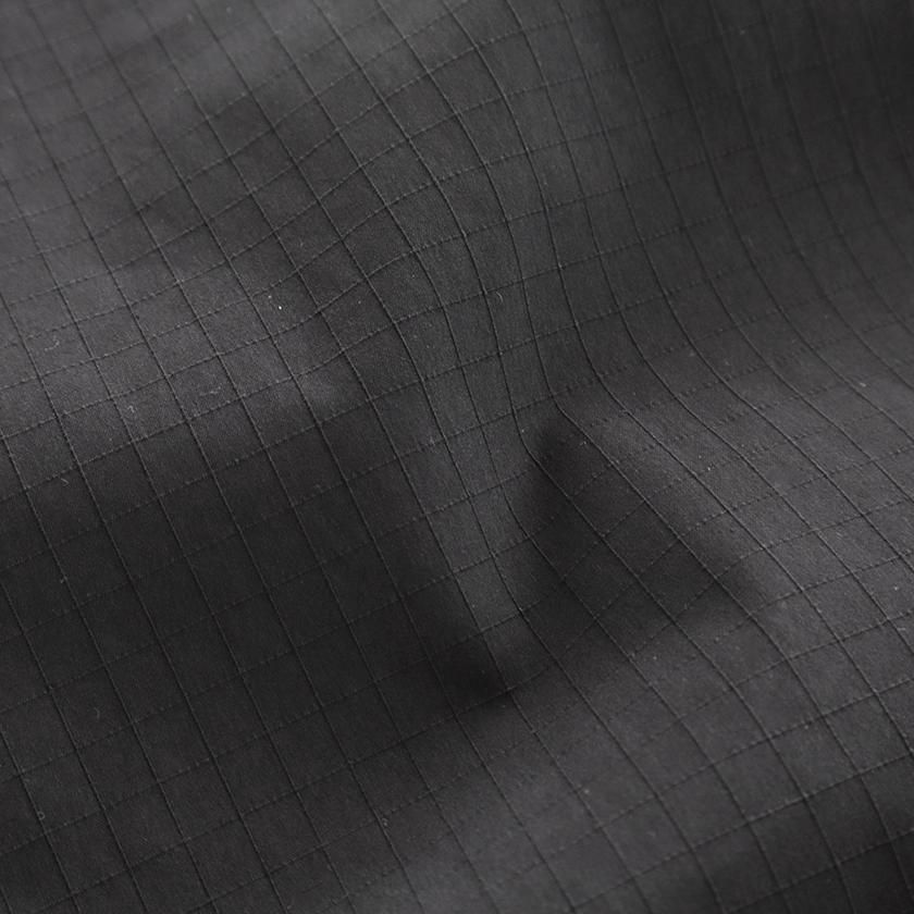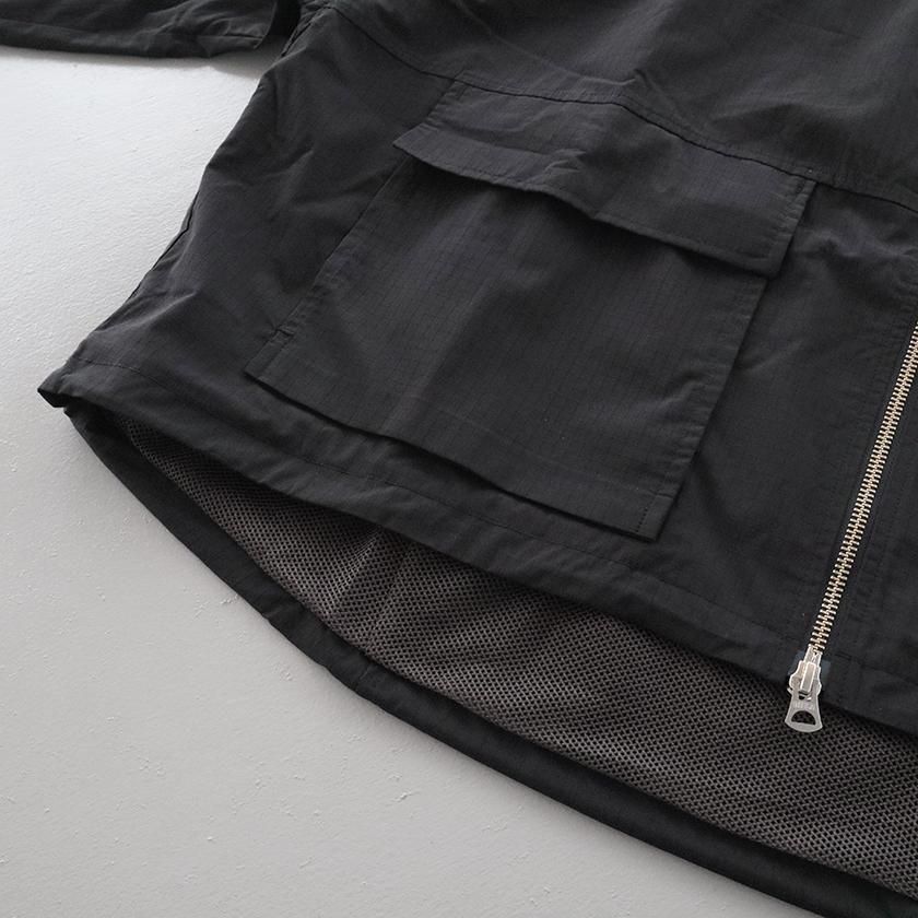 素材はポリエステルリップストップを使用。太い糸を格子状に織り込むことで生地の強度を高め、摩耗や引き裂きに強く、耐久性に優れているのが特徴です。裏地にはメッシュを採用することで、さらっと快適な着心地を実現。薄手で軽やかな着心地なので、朝晩の気温差が大きい季節の変わり目に最適な一着です。