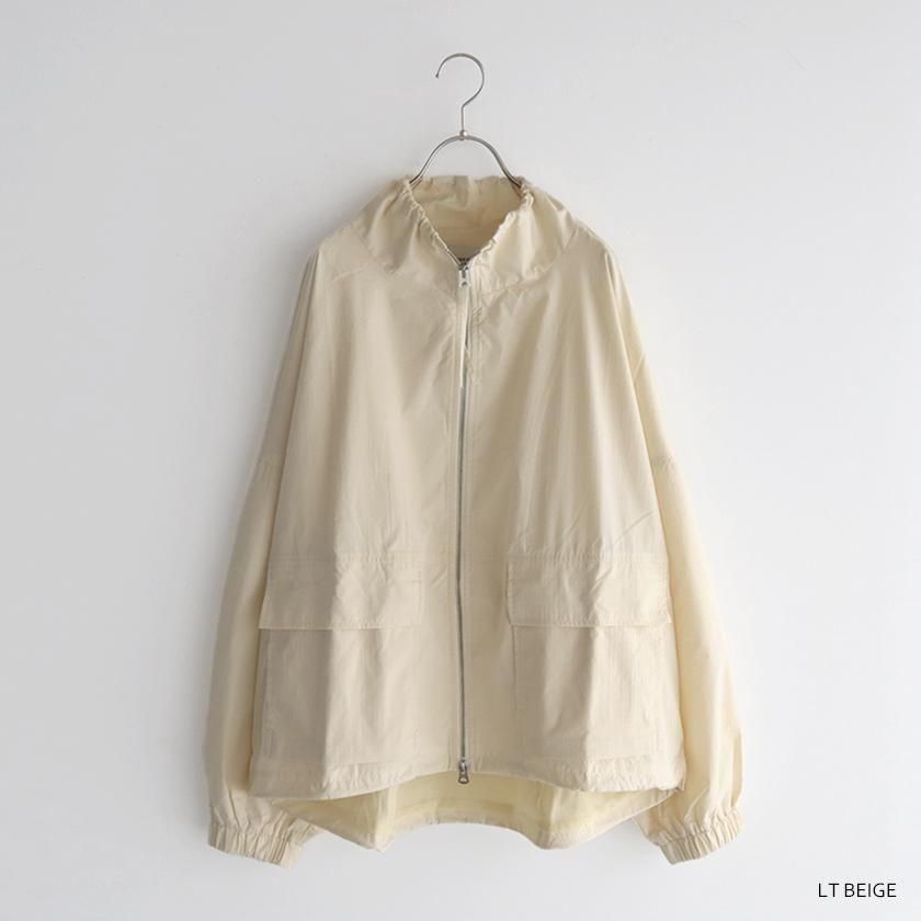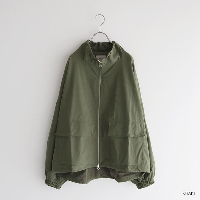 ゆったりリラックスして着れるワイドスクエアシルエット。袖幅も広く設定されているので、中に厚手のスウェットやニットを着込んでも窮屈感なくご着用いただけます。フロントファスナーはダブルジップ仕様で、上まで閉めるとスマートな印象のスタンドカラーに。首元と裾に施されたドローストリングでシルエットを変えたり、様々なアレンジを楽しめますよ。袖口にゴムシャーリングを入れることで、袖をたくし上げてもずれ落ちにくくなっています。特徴的な大きなフラップポケットは二方向から手を入れることができる二層構造になっており、寒いときはハンドウォーマーとして活用できます。
