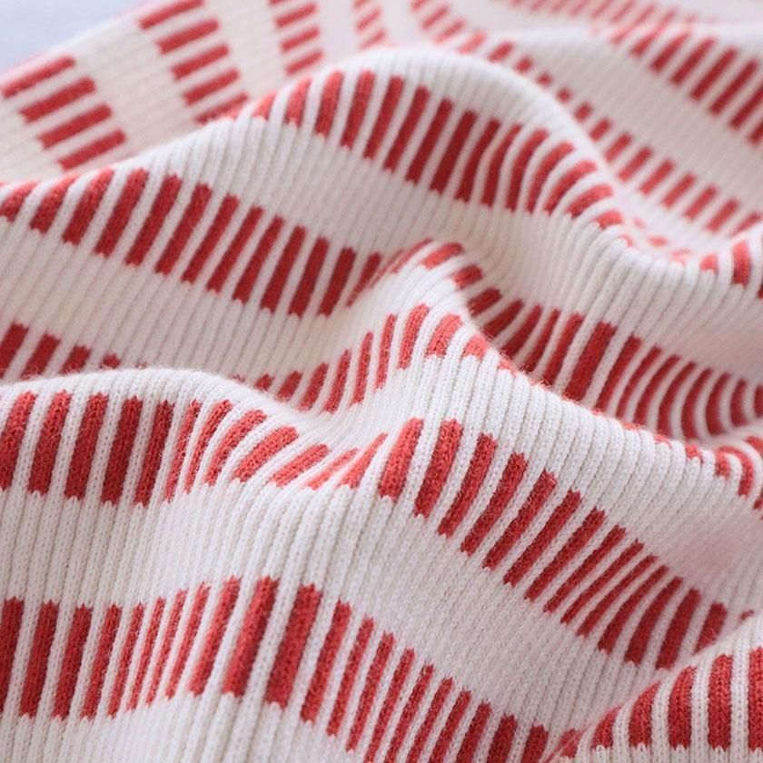 生地にはさらっとした風合いが心地良いドミノボーダーを採用。リブ編みのような細畝に沿ってボーダーを施すことで独特の柄を表現しています。軽やかな着用感でデイリーに活躍するアイテムです。