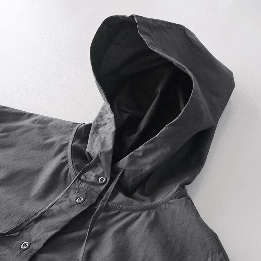 きちんと感とリラックス感を兼ね備えたMidiUmi(ミディウミ)のフード付きシャツワンピースです。