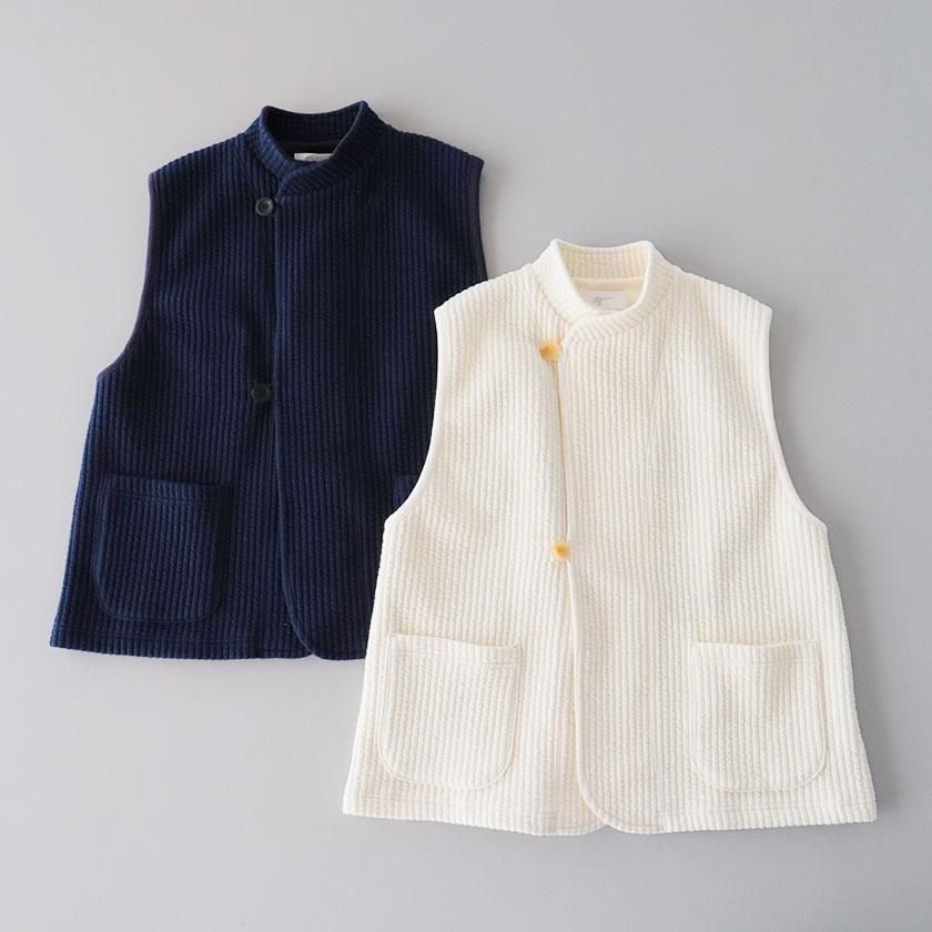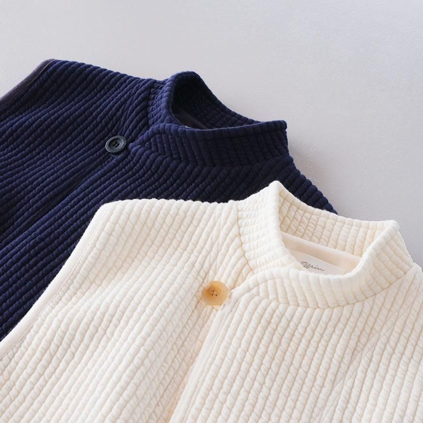 カジュアル感を抑えたタテ縞模様のストライプキルトを使用。ふっくらとした優しい肌触りが魅力でほどよい厚みがありながらも、軽やかにご着用いただけます。秋冬のレイヤードアイテムとして重宝すること間違いなしの一着です。