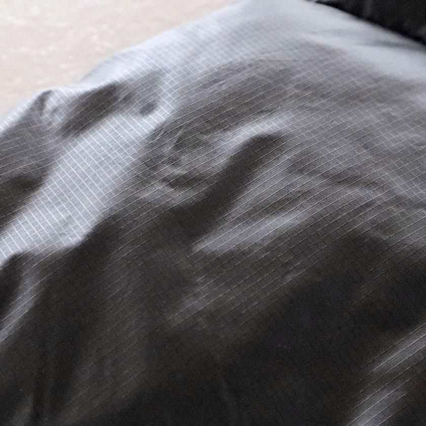 生地にはリサイクルナイロン、羽毛にはリサイクルダウンを使用したエコフレンドリーなアイテム。薄手の10dnナイロンによる軽さと、ダウンをふんわりと感じる柔らかな巻き心地が魅力です。