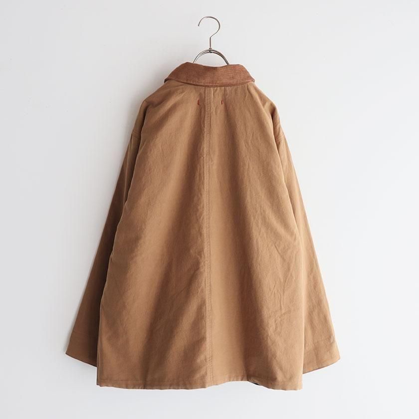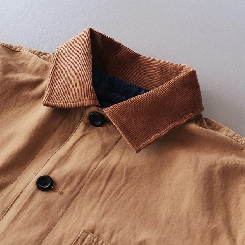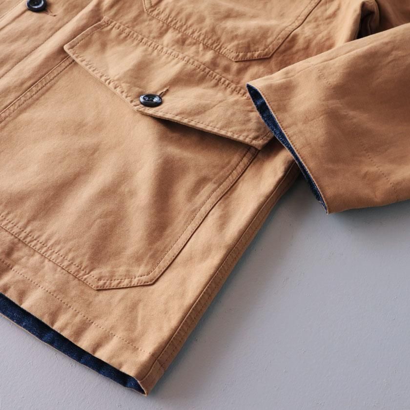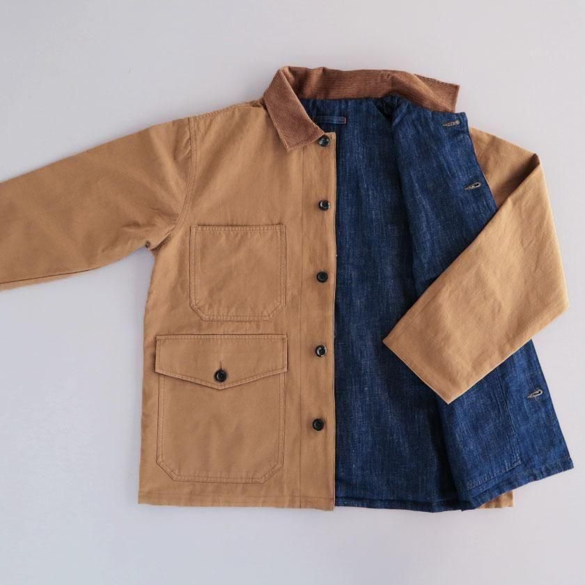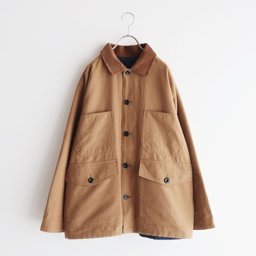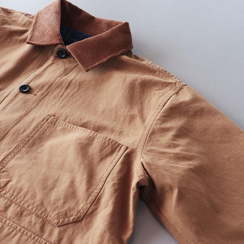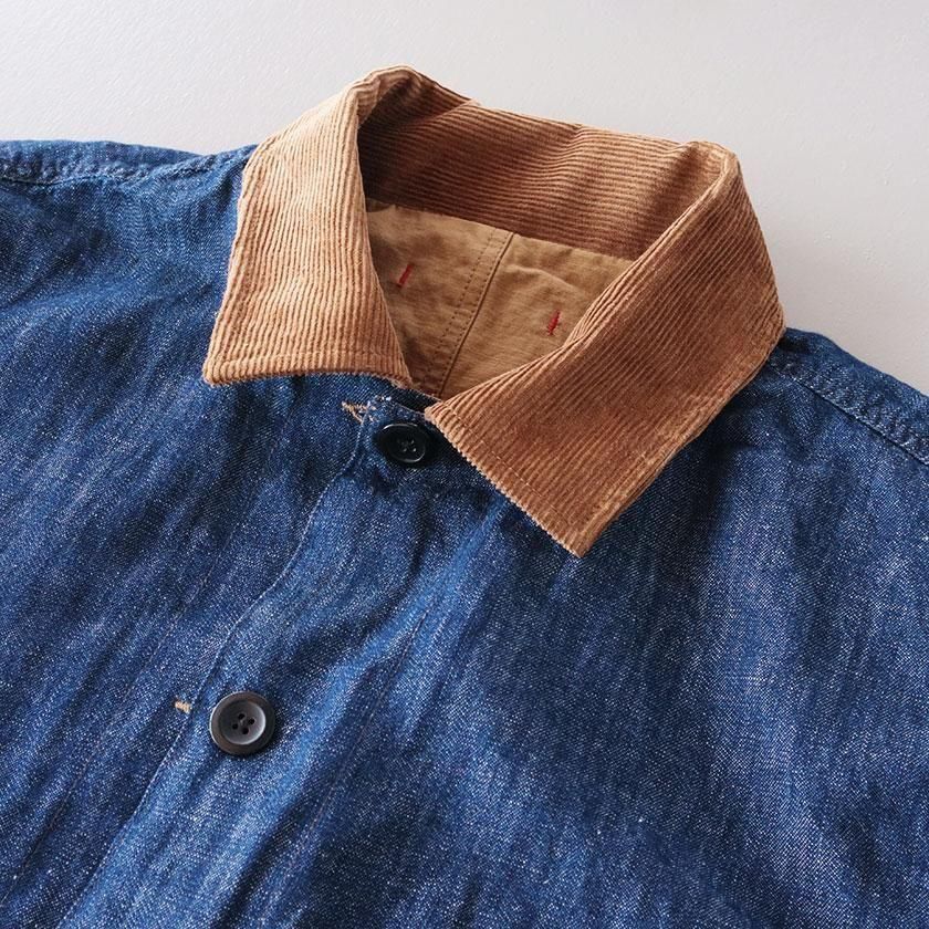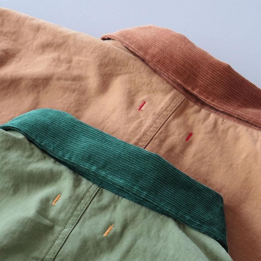ゆとりを持たせたオーバーシルエットと、やや長めの袖丈がメンズライクな雰囲気。袖を折り返すと裏面の生地が現れてアクセントを加えます。ゆったりとした着心地なのでスウェットやセーターなど厚手のインナーも中に着込むことができ、サッと羽織るだけでカッコ良く決まりますよ。それぞれのカラーと同系色になったコーデュロイの襟もポイントに。ツイル面には大きなフロントポケットが4つ、デニム面にも2つついています。
