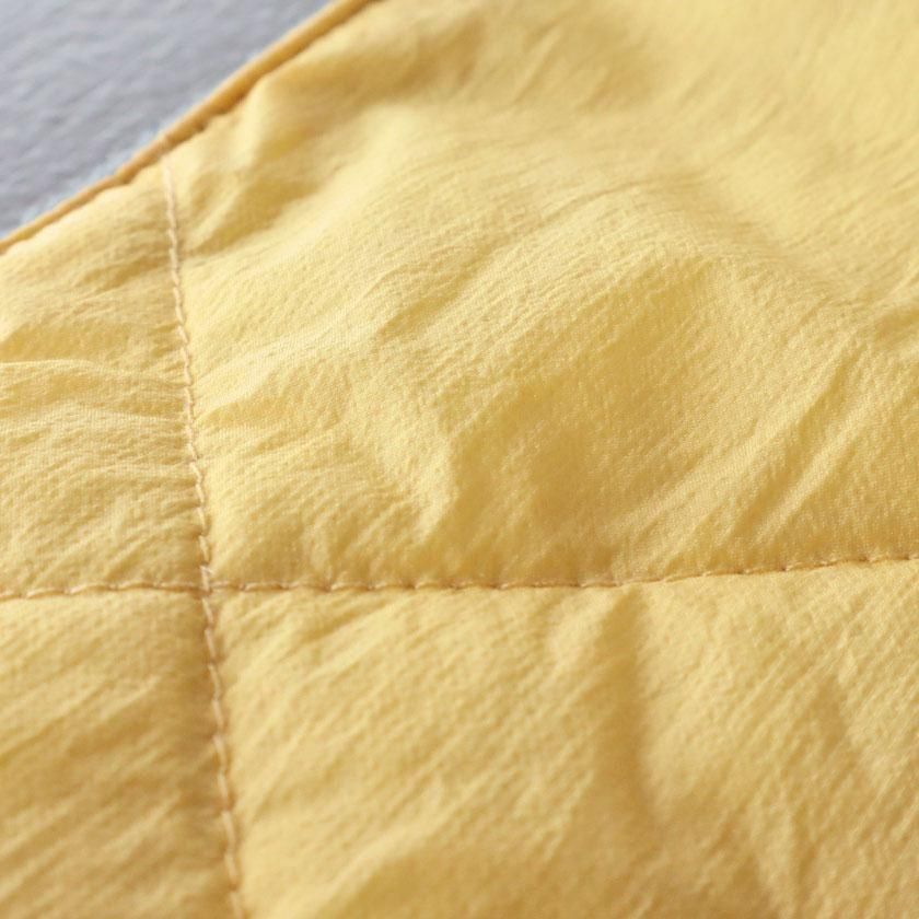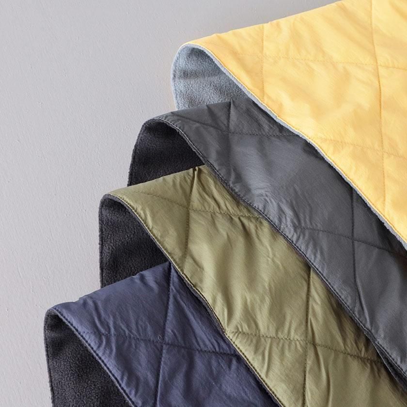 表地は軽くさらっとした肌触りのナイロン生地を使用。撥水機能を備えているので、小雨程度なら弾いてくれます。抗菌・防ダニ加工を施されている中綿は、弾力性と通気性に優れ、蒸れにくいのが特徴。ボリューム感は控えめながらもしっかりと暖かさを保ちます。裏面はなめらかで心地よいフリースを採用しています。ご家庭で洗えるのも嬉しいポイントですね。
