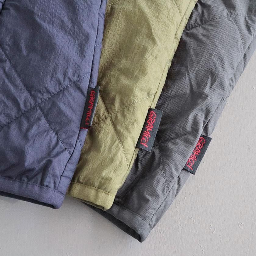 アウターとしてもインナーとしても使えるGramicci (グラミチ)のキルティングジャケットのご紹介です。