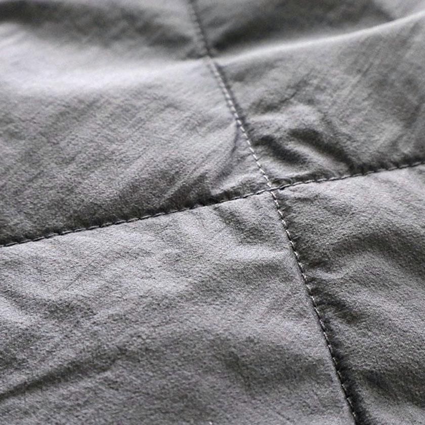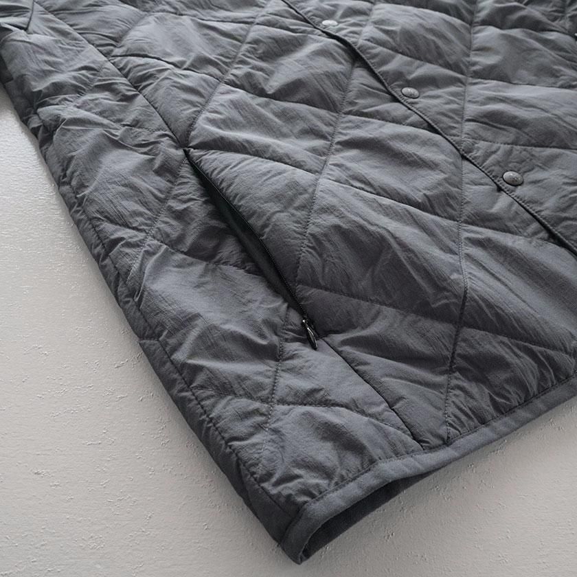 表地は軽くさらっとした肌触りの高密度リップストップナイロンを使用。高い強度と耐久性を持ち、さらに小雨程度なら弾く撥水機能も備えている高機能素材です。ダウンよりも暖かく、保温性に優れた中綿は弾力性と通気性があり、蒸れにくいのが特徴。ボリューム感は控えめながらもしっかりと暖かさを保ってくれます。抗菌・防ダニ加工を施されているうえ、ご家庭でも洗えるので清潔にご着用いただけるのも魅力の一つ。季節の変わり目はアウターとして、寒さが増せばコートのインナーとしてロングシーズン着回せる一着です。