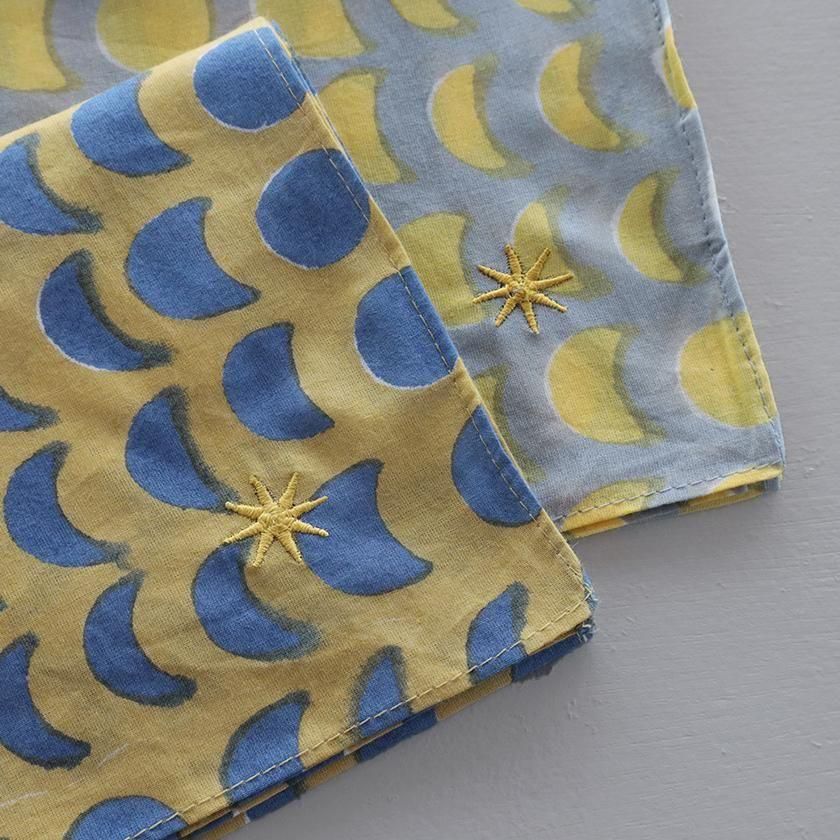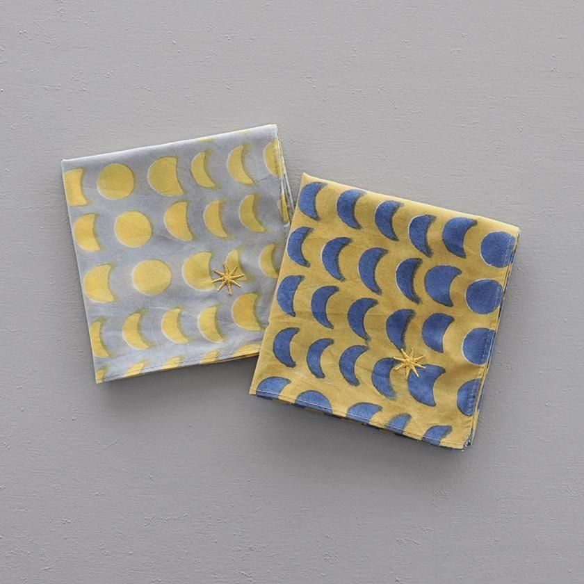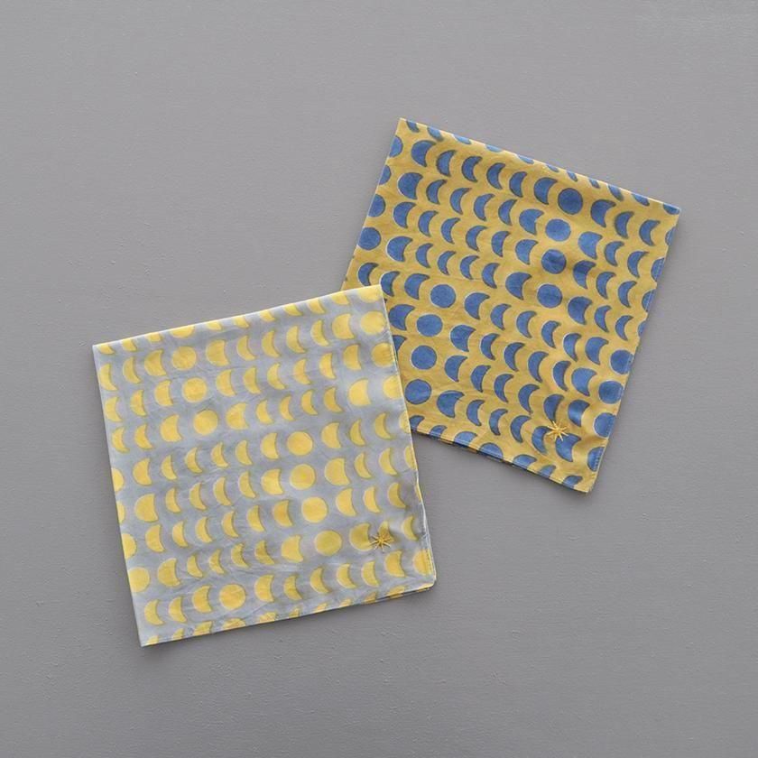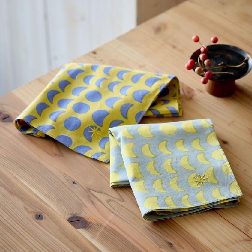 月の満ち欠けを描いたshesay (シセイ)のハンカチのご紹介です。
