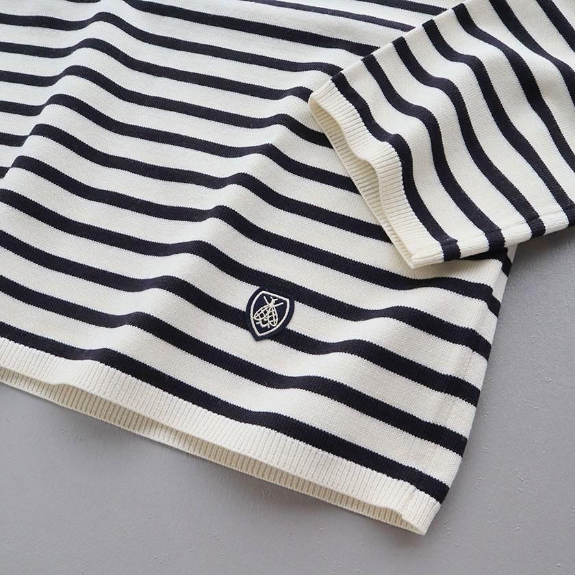 ゆとりがありながらもワイド過ぎない身幅と腰にかかるほどのややコンパクトな着丈。どんなボトムスでもバランスがとりやすく、シャツやカットソーを裾から覗かせるのも◎シンプルながらこなれた着こなしが叶う、計算された絶妙なシルエットが魅力です。左裾にあしらわれたブランドお馴染みのミツバチワッペンがさりげないアクセントになっています。