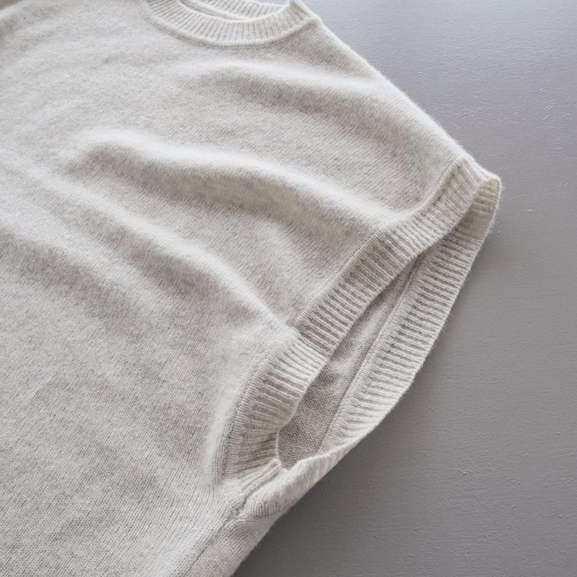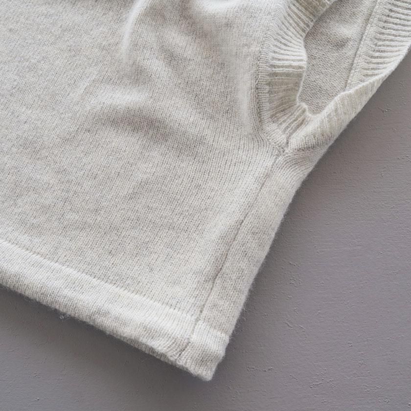 柔らかく優しい肌触りのラムナイロンで編み立てたgrin (グリン)のベストです。