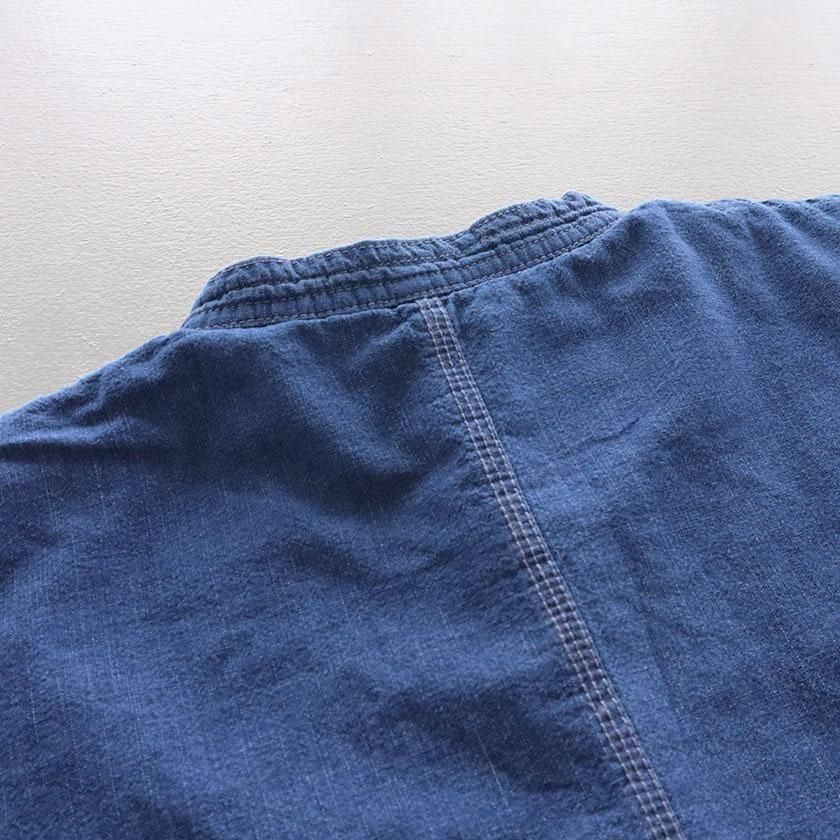 ※インディゴ染めのため、摩擦や汗、雨で濡れた場合、他の衣料、下着、バッグ、ベルトや靴などに色が移ることがありますのでご注意ください。