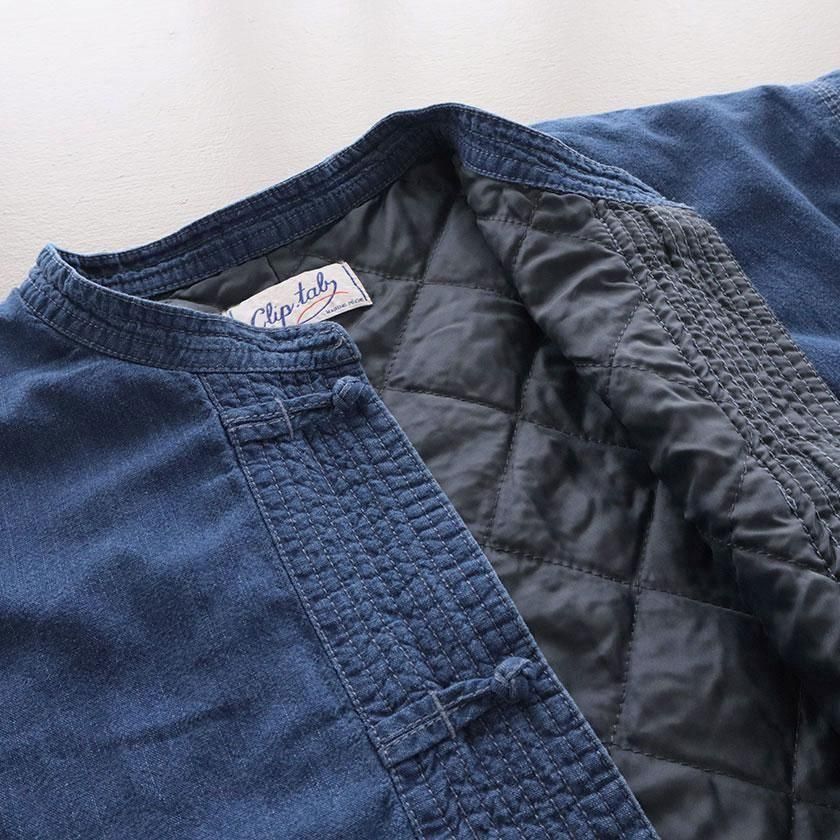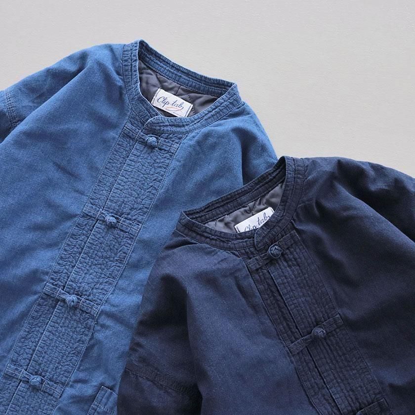 Clip.tab (クリップタブ) の定番人気素材、インディゴシャンブレーを使用したキルトジャケットのご紹介です。