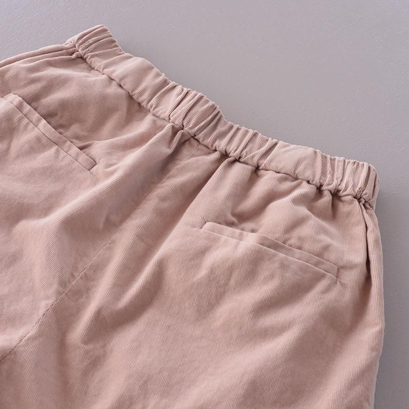 ウエストはリラックスして穿けるのが嬉しい総ゴム仕様。内側にドローコードが付いており、サイズ調節も可能です。ポケットは両サイドに1つずつと、後ろにも2つ付いています。