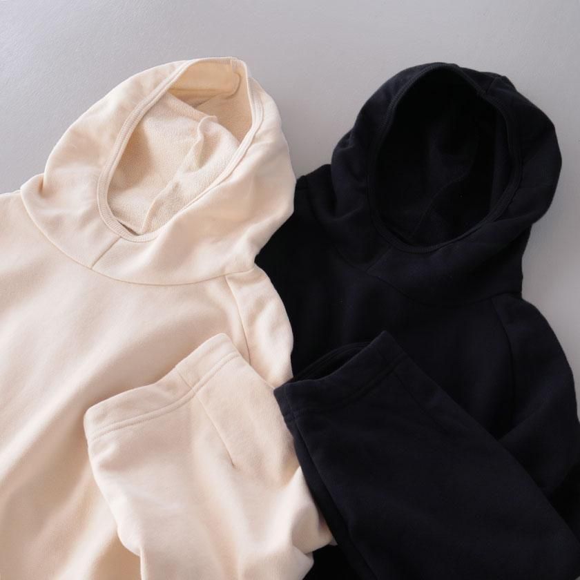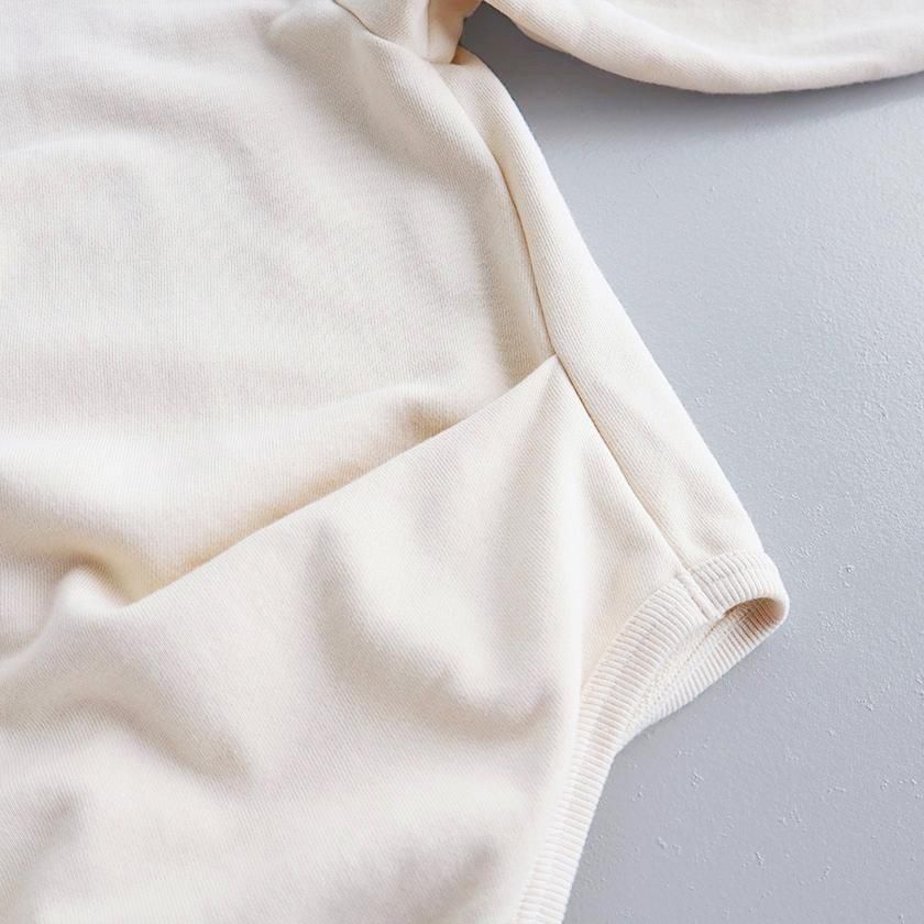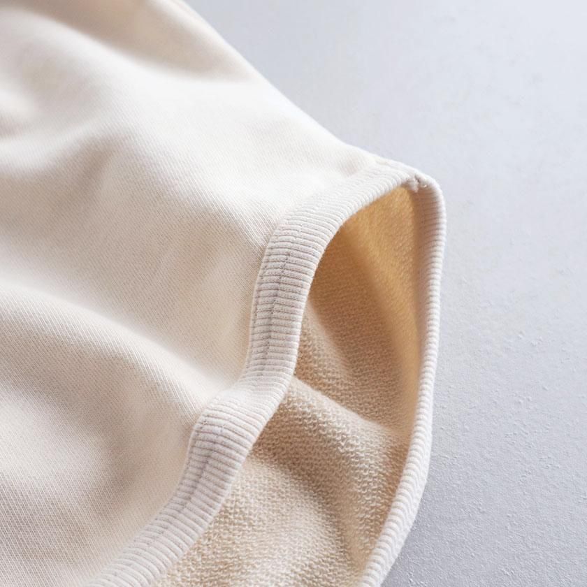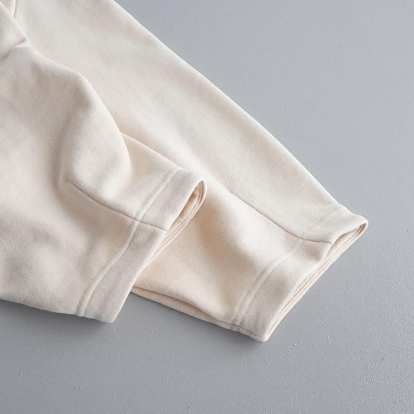 生地には膨らみ過ぎないすっきりとした肉感で毎シーズン人気のセントラル裏毛を使用。適度な保温性がありながらも蒸れにくく、吸水性の高さも兼ね備えています。裏側のパイルはふっくらと柔らかく、心地よい肌触りでサラッと快適に着用いただけます。