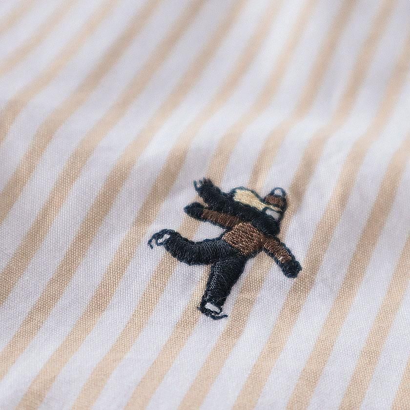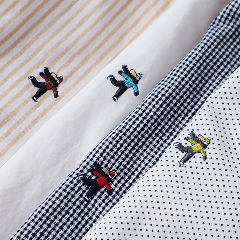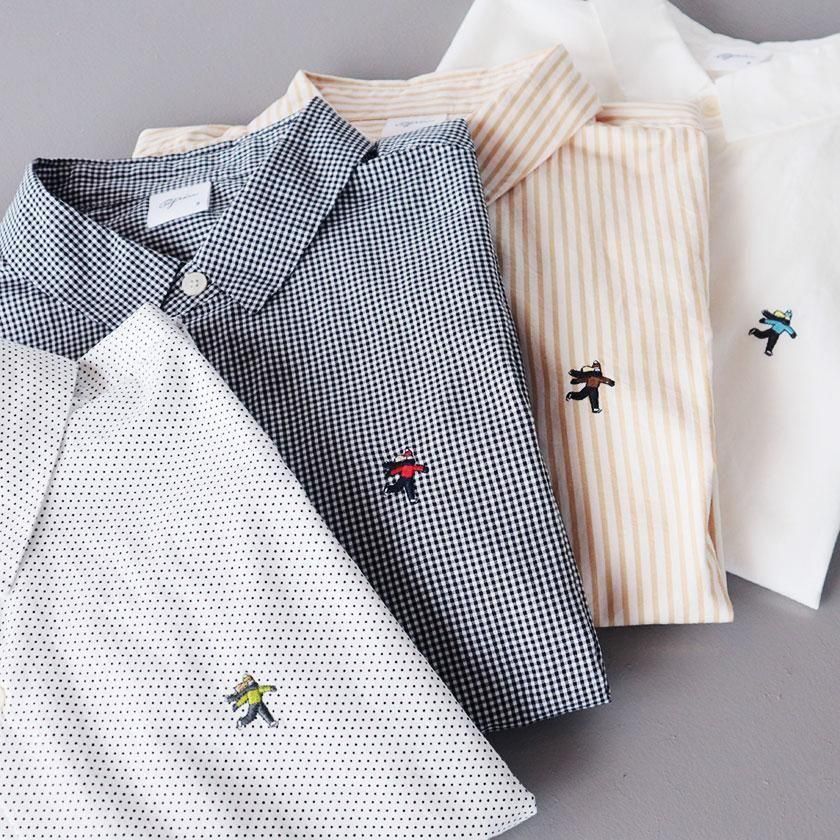 ブロードシャツに刺繍をあしらったgrin (グリン)の人気シリーズより、今シーズンはスケートをしている女の子がワンポイントになったシャツのご紹介です。