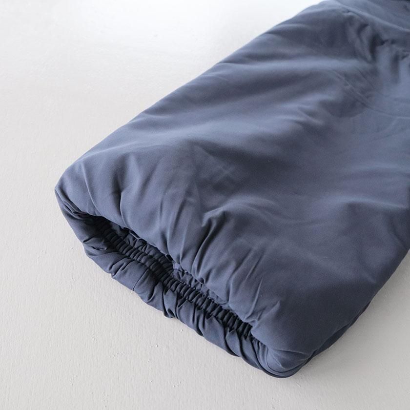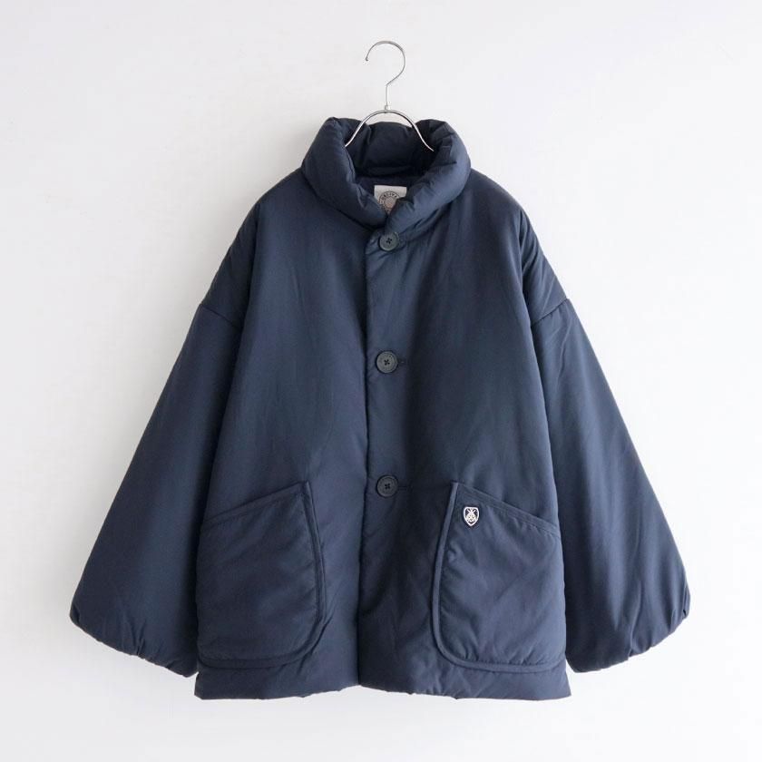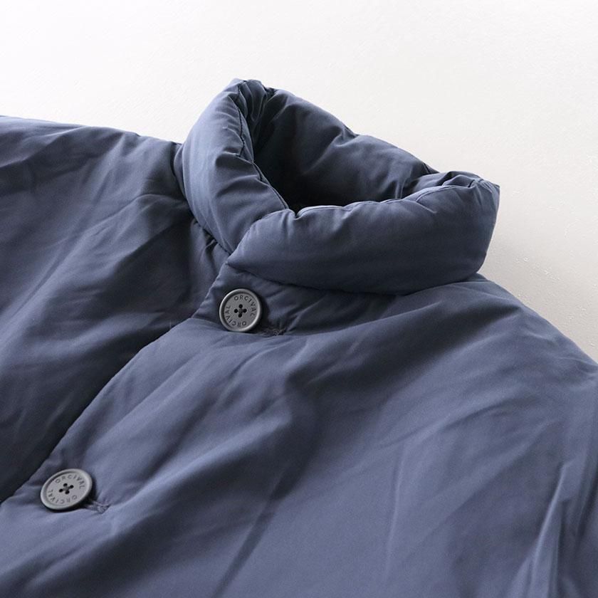 袖口と裾口にゴムを入れた丸みのあるシルエットが特徴的。ボリュームのあるフォルムながら、とても軽やかな着心地なのもポイントです。ゆとりのある身幅に肩が落ちたデザインでリラックス感のある雰囲気に。立体的なスタンドカラーが防風性を高め、首元を暖かく包みます。着丈はヒップにかかるほどのほどよい長さに設定にすることで、どんなボトムスともバランス良く着こなせますよ。フロントには大きなパッチポケットが2つ付いています。