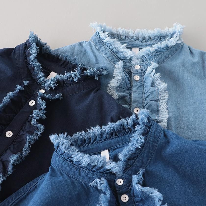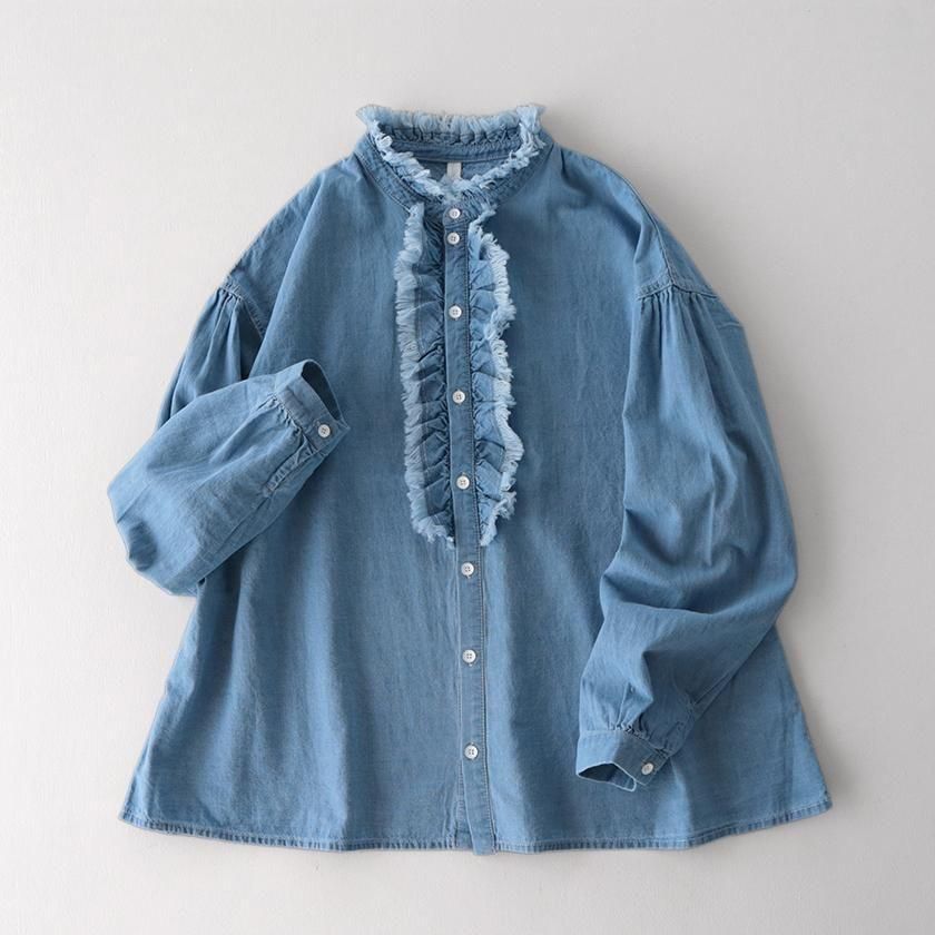 華やかなフリル使いが目を惹くClip.tab (クリップタブ) のシャンブレーシャツです。