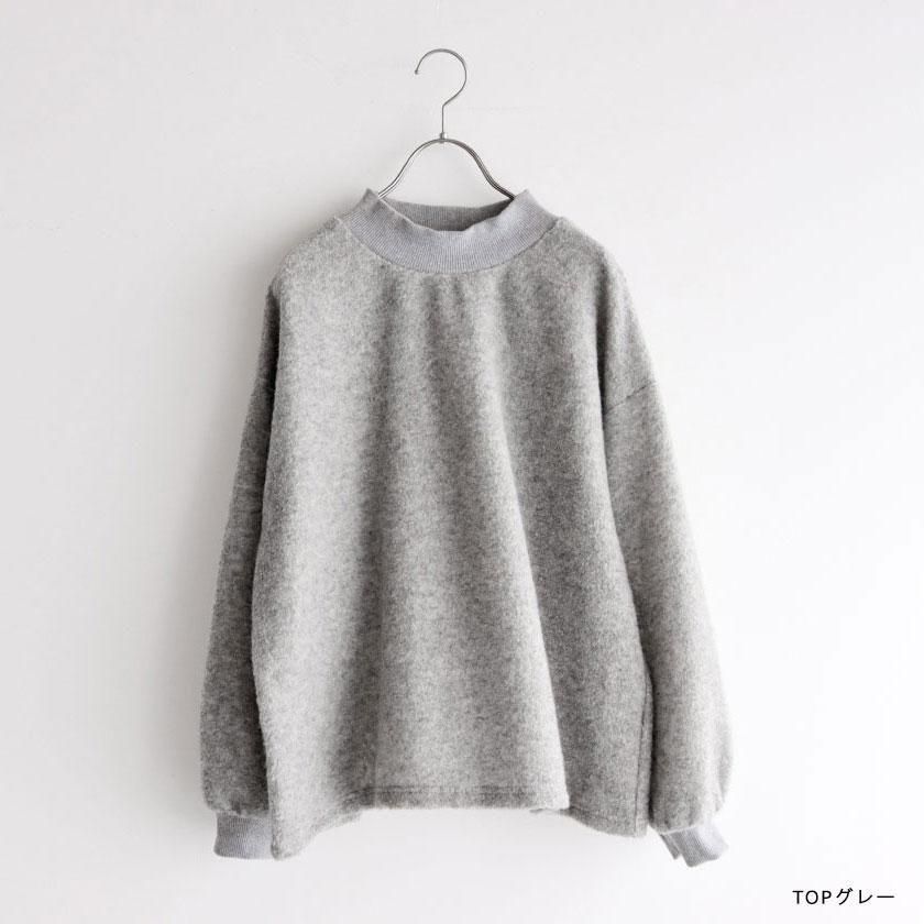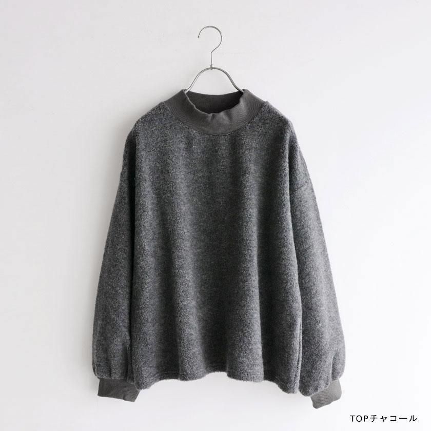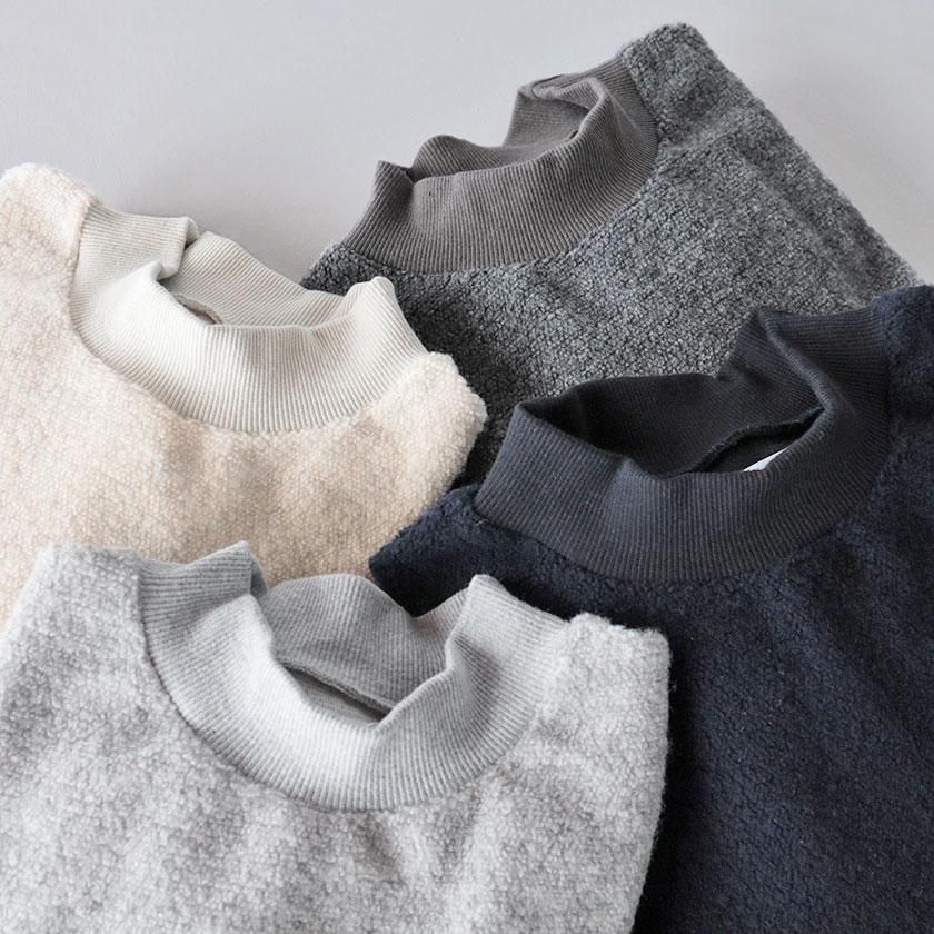 首元はリブで立ち上げたモックネック仕様。袖口も同様にリブを施すことでメリハリのあるデザインに仕上げています。