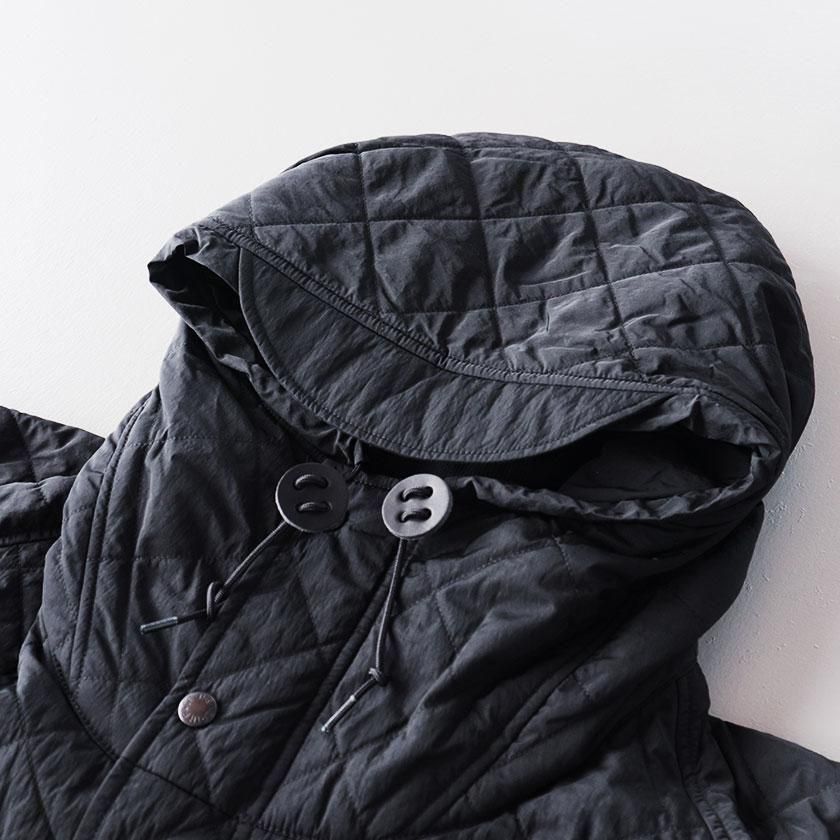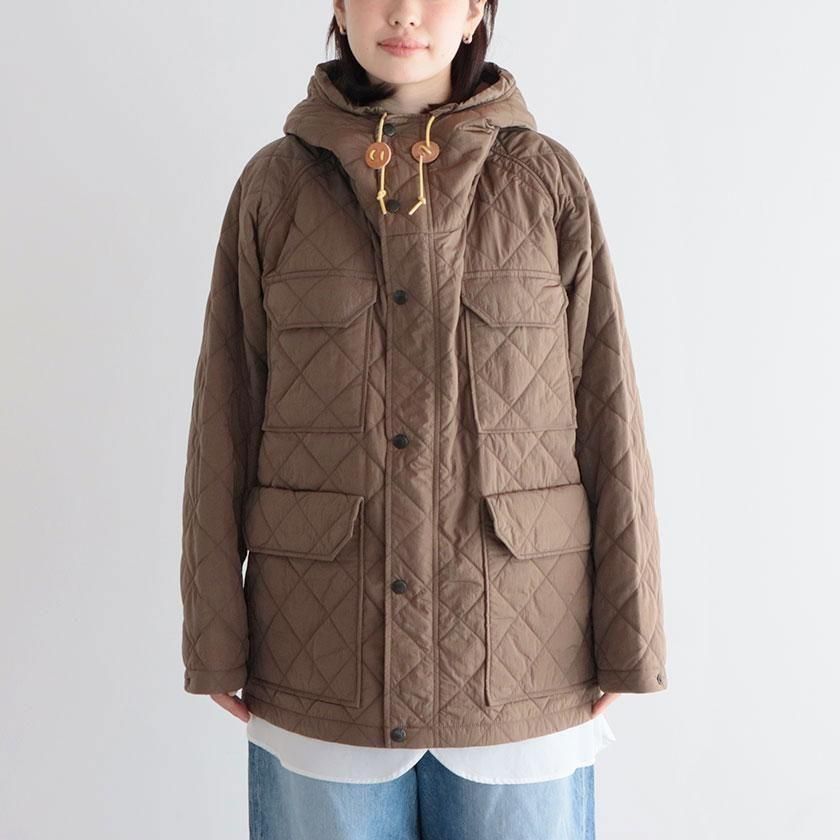 ブランド定番のマウンテンパーカをベースに、素材を変更して現代的なシルエットにアップデートしたモデル。表地には環境に配慮したリサイクルナイロンタフタのキルティング素材を使用。ムラ感のある独特の風合いが特徴的で、色合いに奥行きが感じられる仕上がりになっています。キルティングデザインはオーセンティックなダイヤ柄をメインに後身頃にはアメリカンパッチワークを参考にしたオリジナルのキルトステッチを施しています。