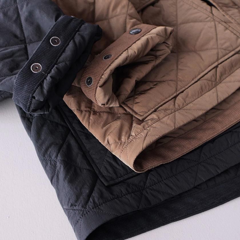 全体的にゆったりとしたオーバーサイズシルエット。袖幅も広めの作りなのでニットなど厚手のアイテムとのレイヤリングにも最適です。首回りと袖口、裾には肌当たりのいいコーデュロイ生地を使用し、ディテールまでこだわりが感じられます。ポケットはフロントに4つのフラップポケットと左内側にも1つ配置。大きなフラップポケットはサイドから手を入れられる二重構造になっており、ハンドウォーマーとしてもお使いいただけますよ。
