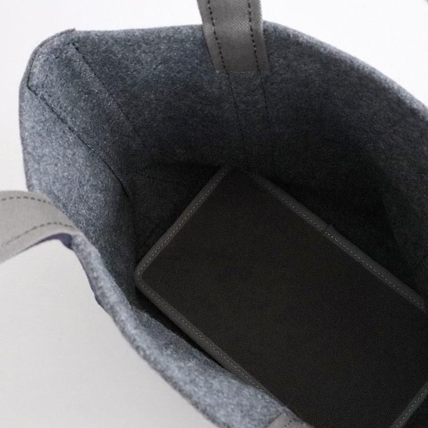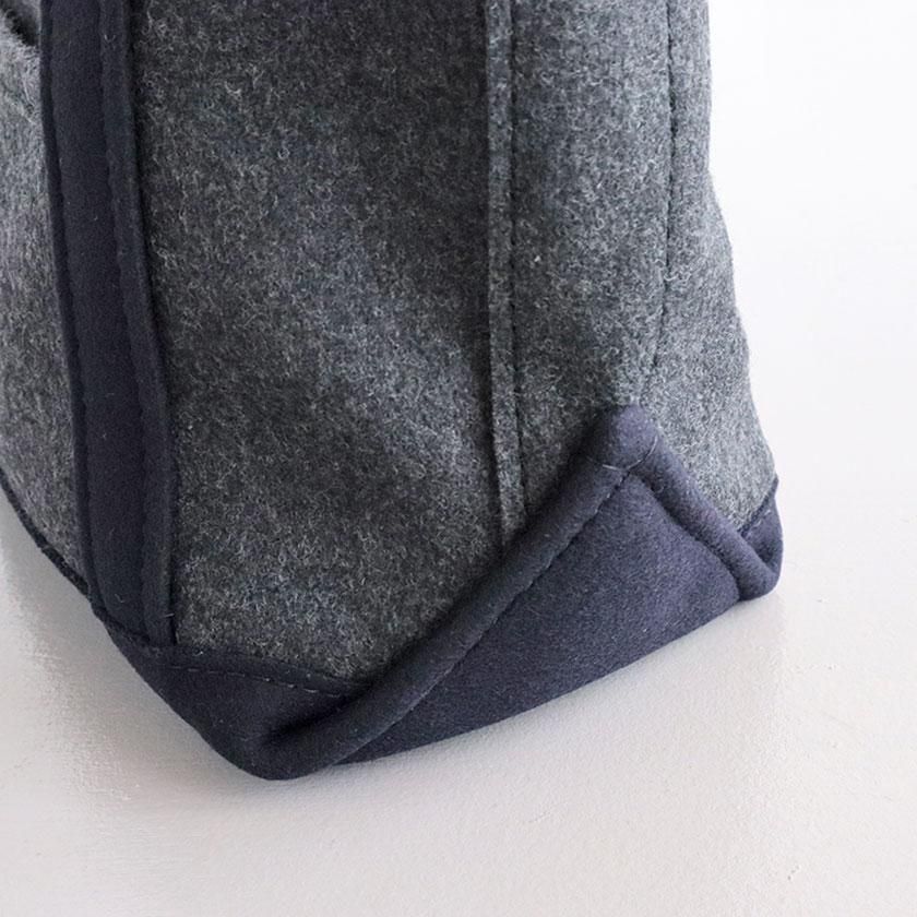 定番のキャンバストートバッグのフォルムはそのままに、ほっこりと温かみのあるメルトン生地を使用した秋冬にぴったりのアイテム。柔らかい生地ですが、付属の底板のおかげでバッグ単体でも自立してくれ、デイリー使いするには嬉しいポイントです◎