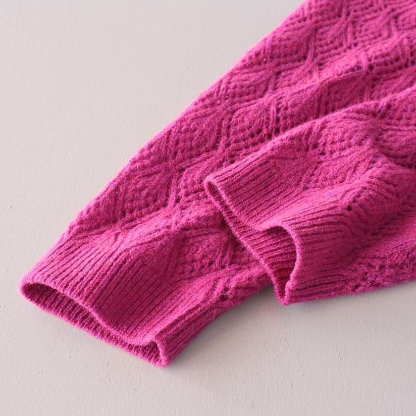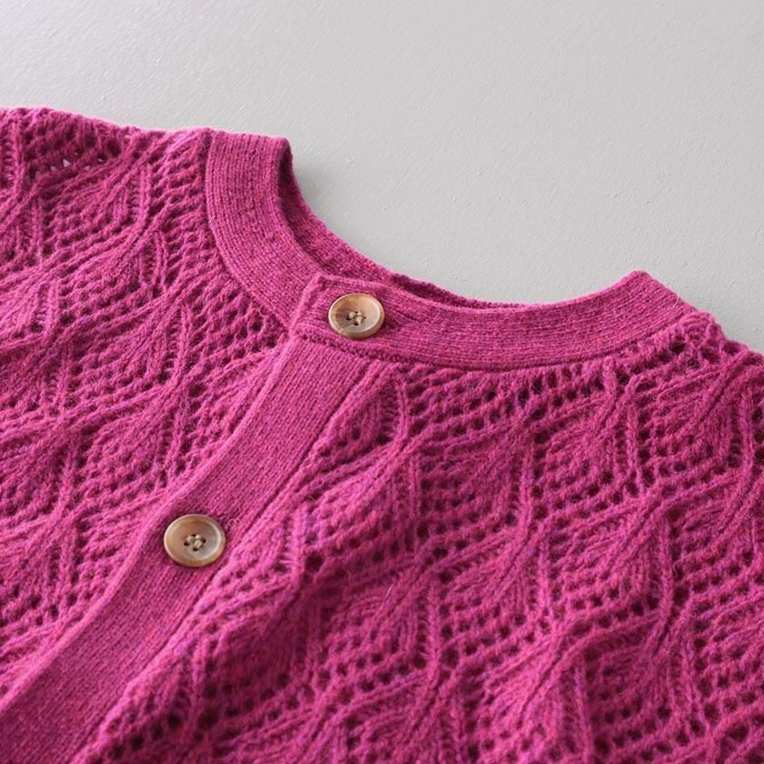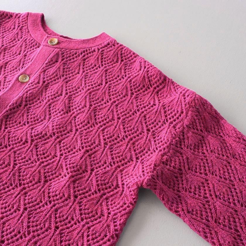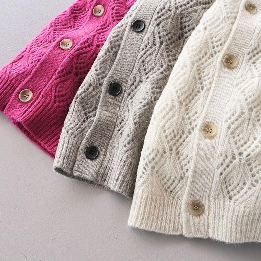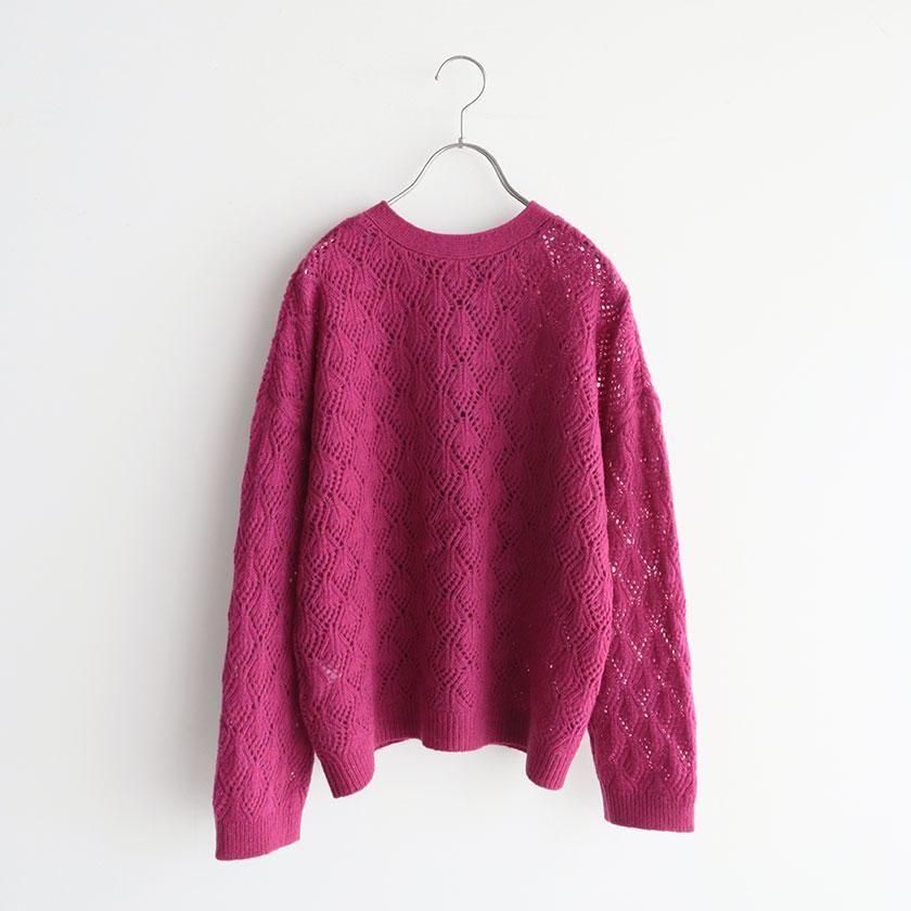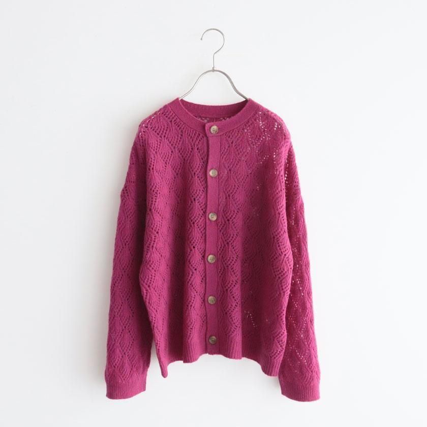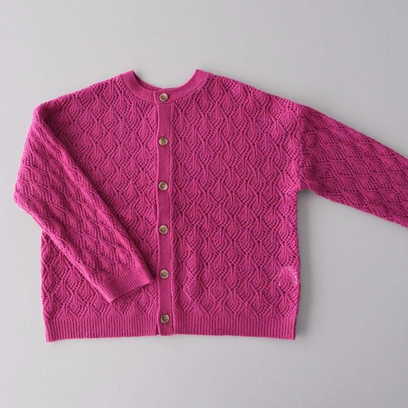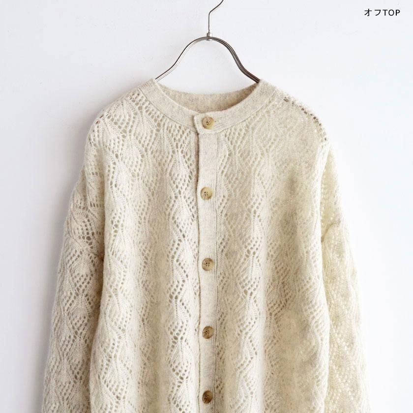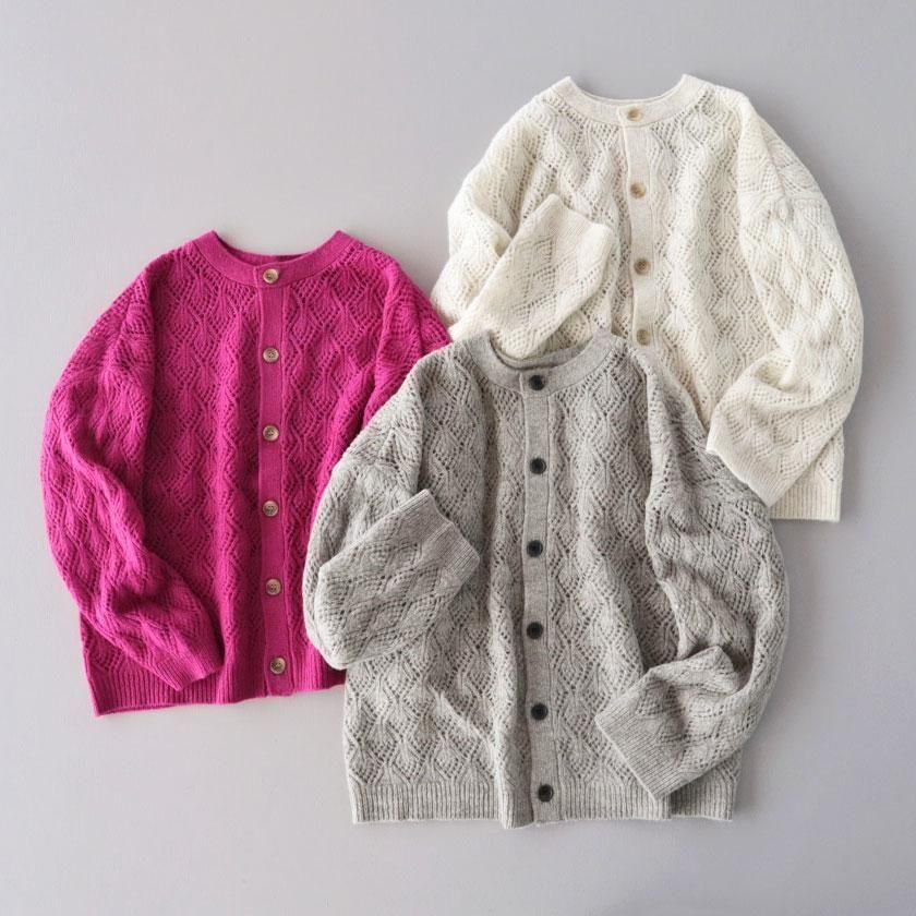 優しい雰囲気の編み柄が目を惹くgrin (グリン)のレース編みカーディガンです。