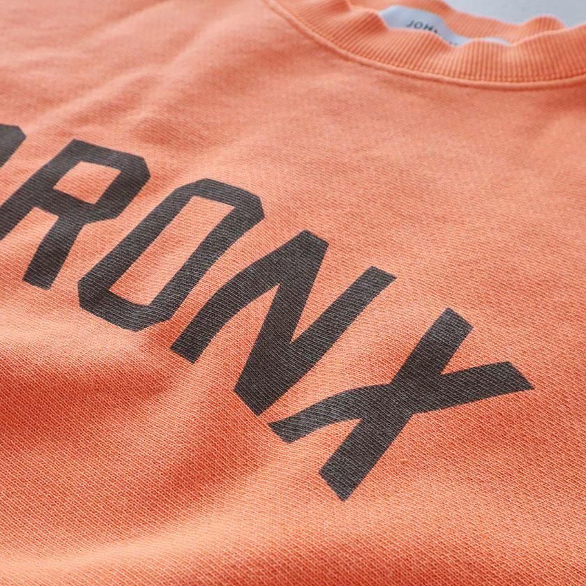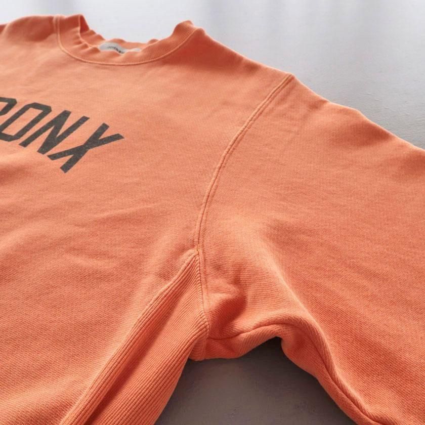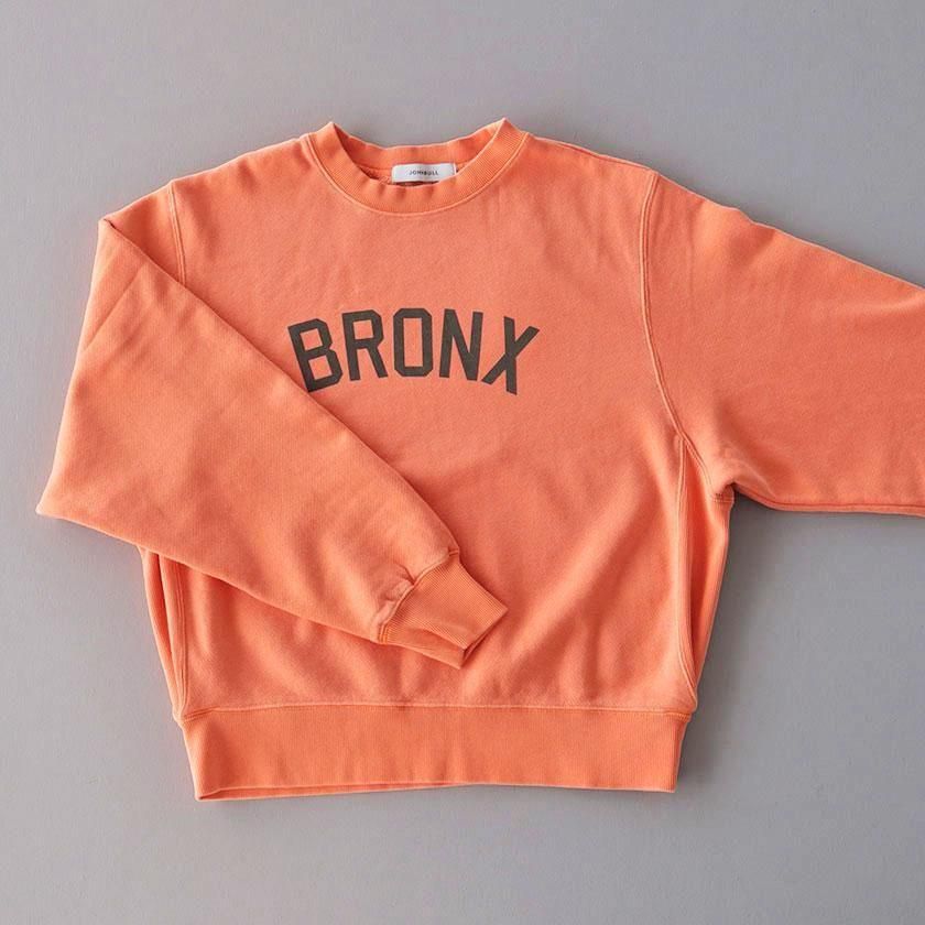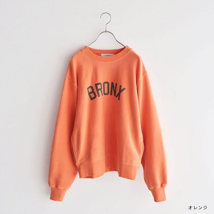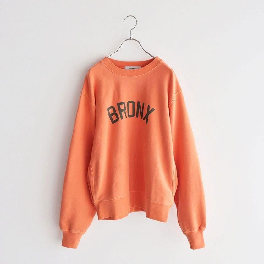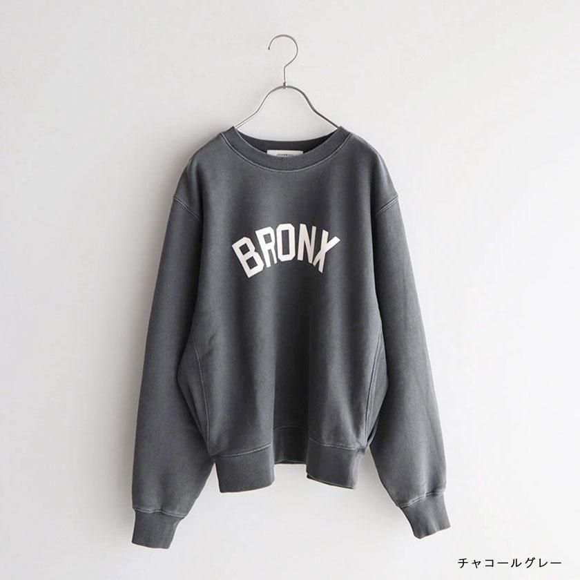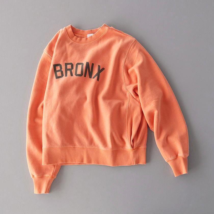 ゆったりワイドな身幅と脇リブの裾にタックを入れることで丸みのあるシルエットを作り出しています。ボリュームのある袖もポイントで袖口と裾、首元をリブ仕様にすることでメリハリのある印象に。着丈は長すぎないように設定し、シャツやカットソーとのレイヤードにも最適です。ヒップホップ発祥の地であるニューヨーク最北端の都市ブロンクスのロゴプリントがほどよく存在感を放ち、シンプルなデザインのアクセントになっています。