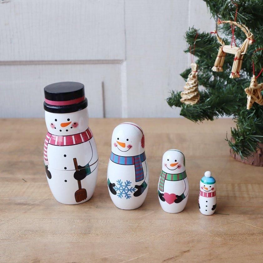 木のぬくもりを感じるほっこりした雰囲気で、一番大きな雪だるまの中には3体の雪だるまが。それぞれマフラーやイヤーマフなどの絵柄が違っています。全部を並べてもよし、好きな絵柄だけを取り出してもよし。いろいろな飾り方を楽しめますよ。