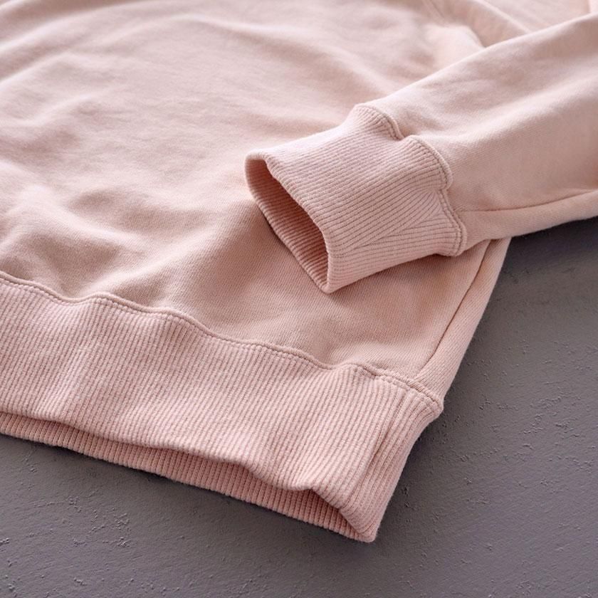 ゆっくりと編みあげることにより、ふっくらと柔らかい風合いに仕上げたコーマ裏毛素材を使用。厚すぎず、薄すぎずの生地感で季節の変わり目からロングシーズン活躍してくれます。