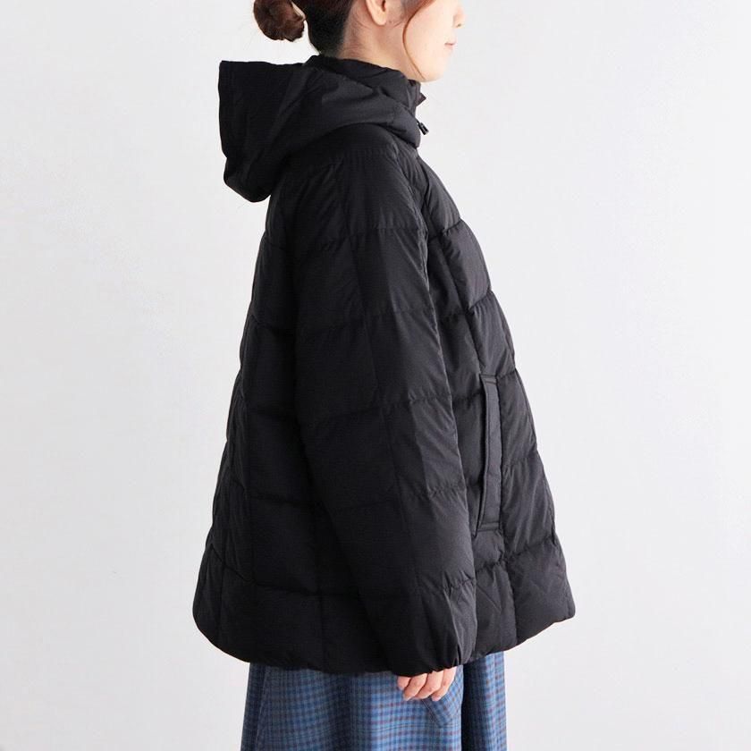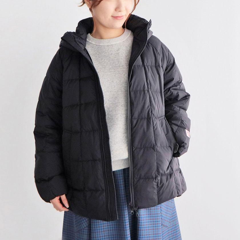 ほどよくゆとりを持たせた身幅とラグランスリーブにすることで動きやすくストレスフリーな着心地に。裾に向かって広がるAラインシルエットが女性らしい印象を与えます。フロントファスナーはダブルジップ仕様。首元は高さのあるデザインで首回りを包み込み、冷たい風を防いでくれます。腰回りが隠れるほどの絶妙な丈はどんなアイテムとも好相性◎内側の裾に備えられたゴムスピンドルでシルエットのアレンジも楽しめますよ。