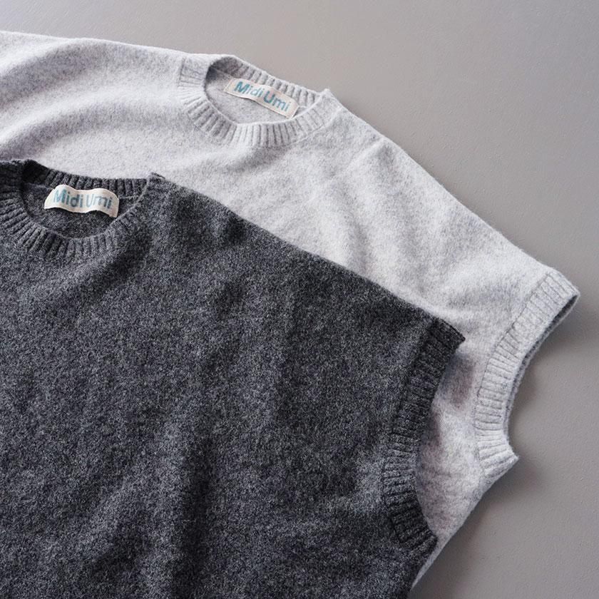 秋冬のレイヤードスタイルに重宝するMidiUmi (ミディウミ)のニットベストのご紹介です。