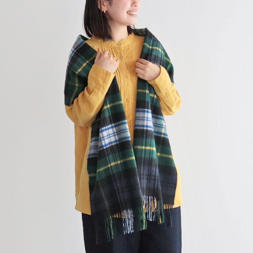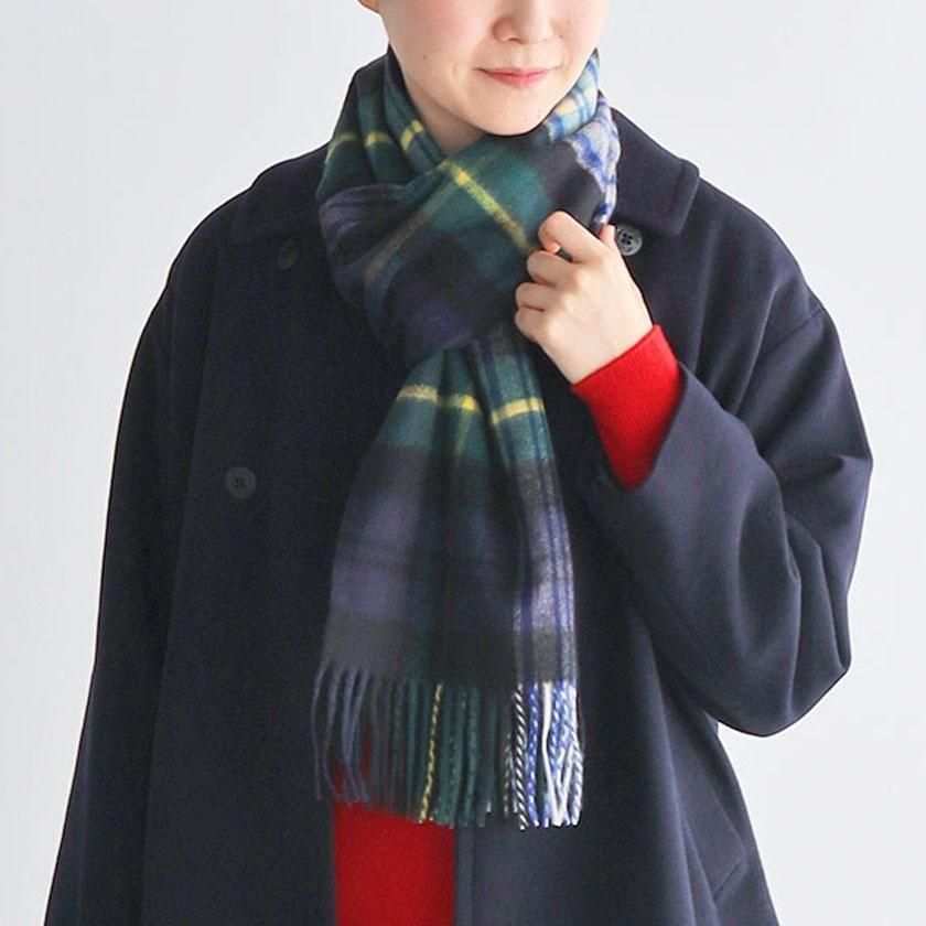 こちらはほどよいボリュームと使い勝手の良さがポイントの中判サイズ。長さがしっかりとあるので、ワンループ巻きで首まわりをすっきり見せたり、ニューヨーク巻きでボリューム感を演出したりと巻き方も自由自在。自然に生まれるドレープが綺麗で、シンプルに巻くだけでも洗練された上品な印象を与えてくれますよ。