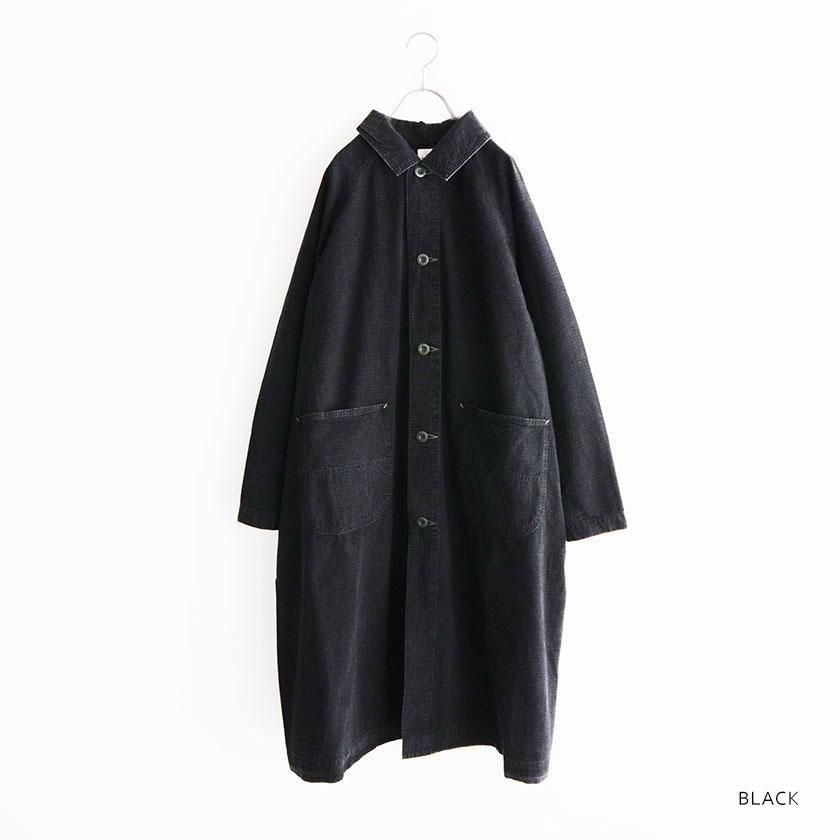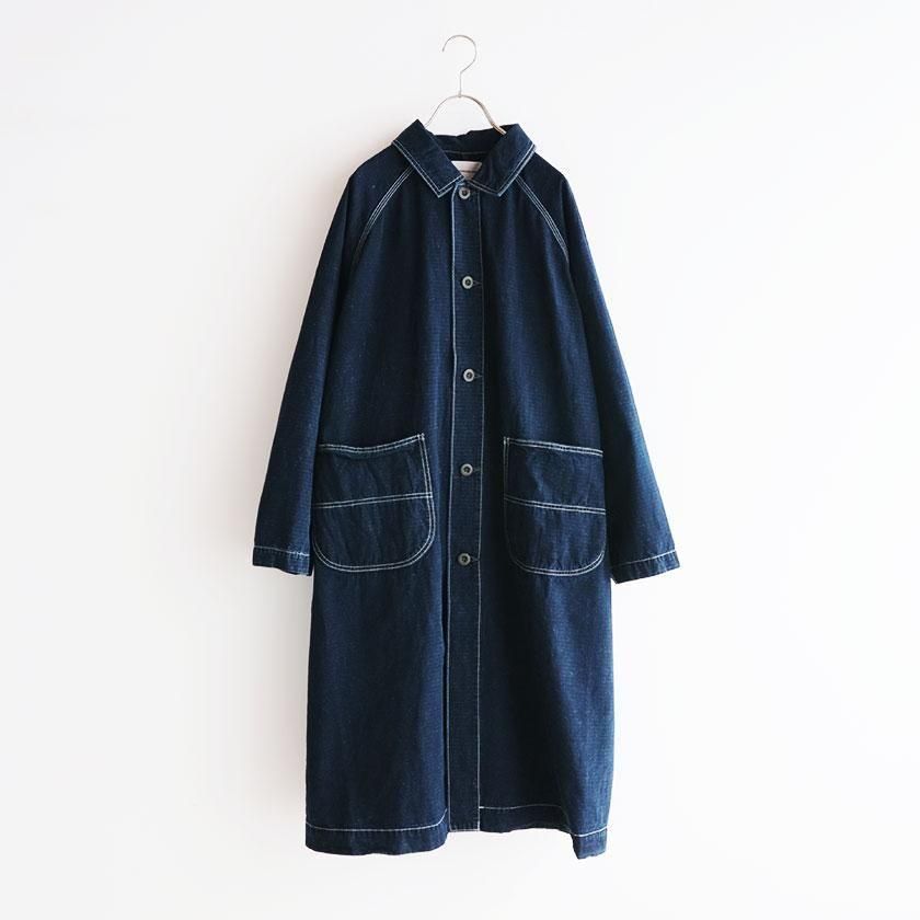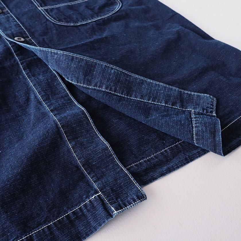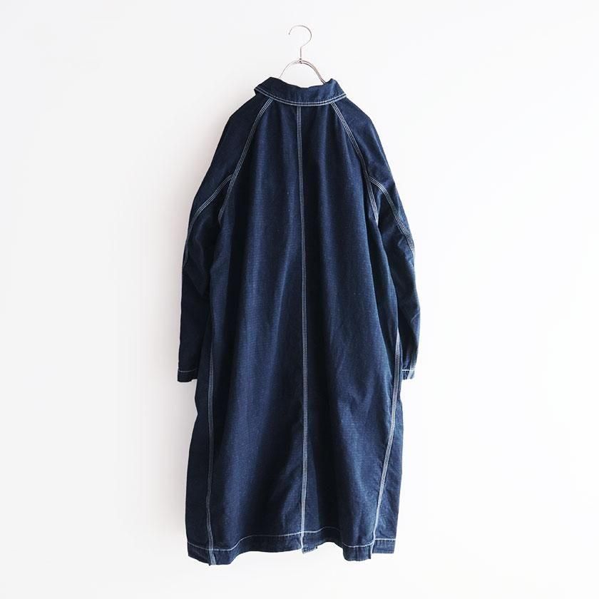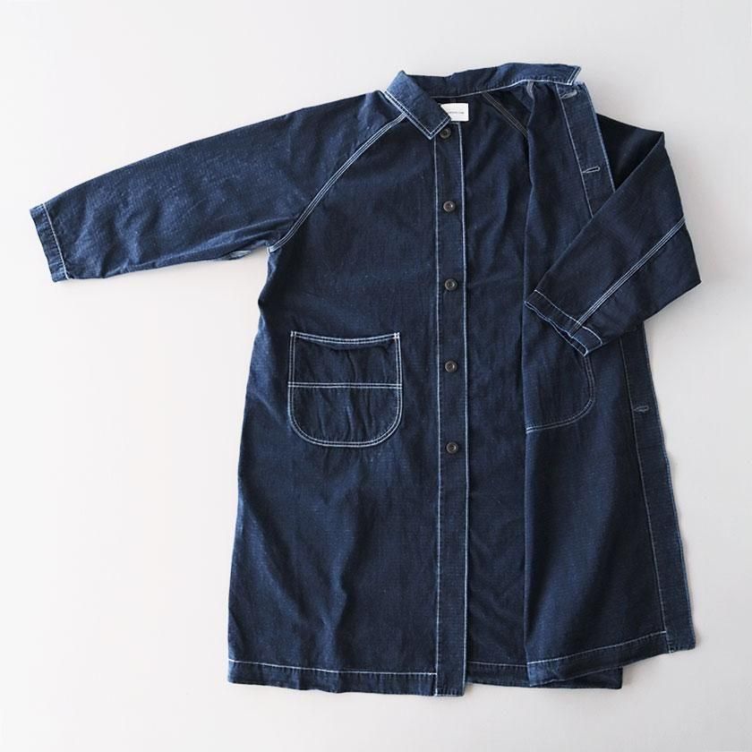 ゆったりワイドな身幅にラグランスリーブでリラックスムード漂う雰囲気。膝下ほどまであるロング丈が大人っぽく、こなれた着こなしを叶えます。ワークテイストを思わせるフロントの大きなパッチポケットがデザインのポイントに。ポケットのカン止めや裏側のチェーンステッチを配色にするなど細かなところまでこだわりが感じられる仕上がりになっています。袖をまくってチラッと配色を覗かせても素敵ですね。