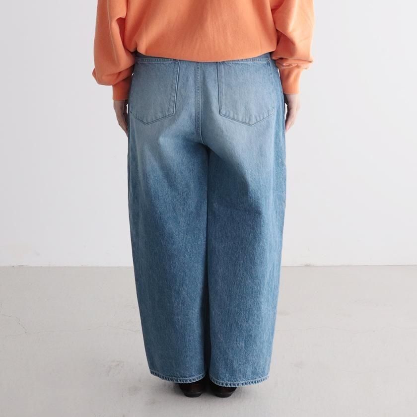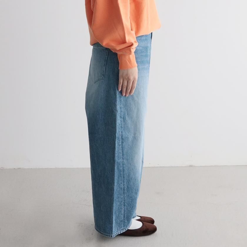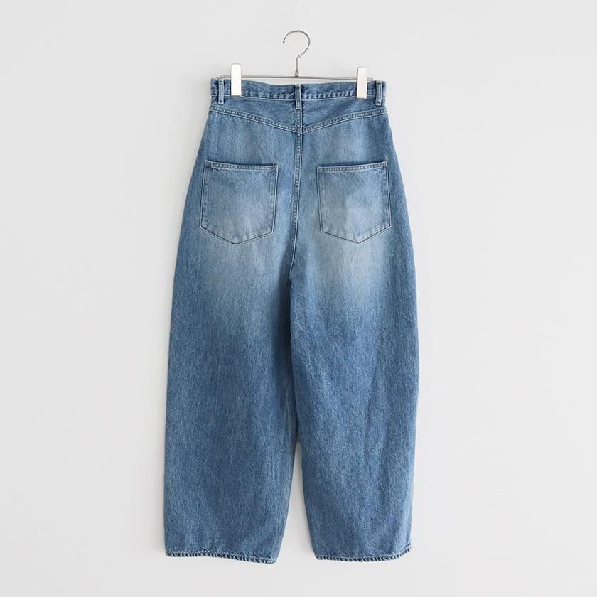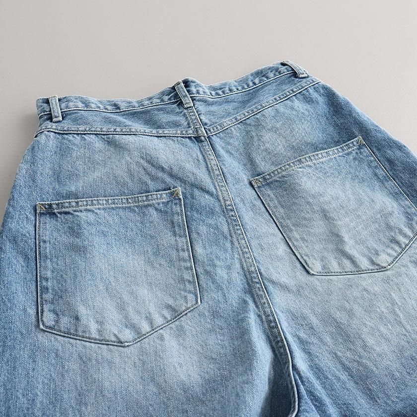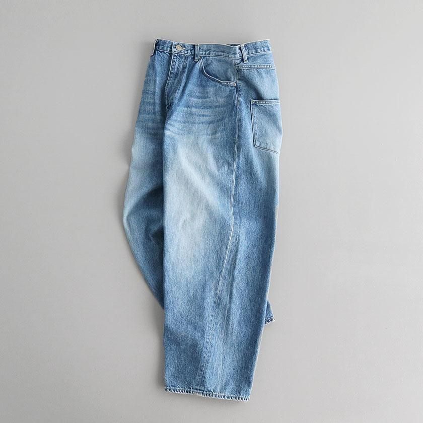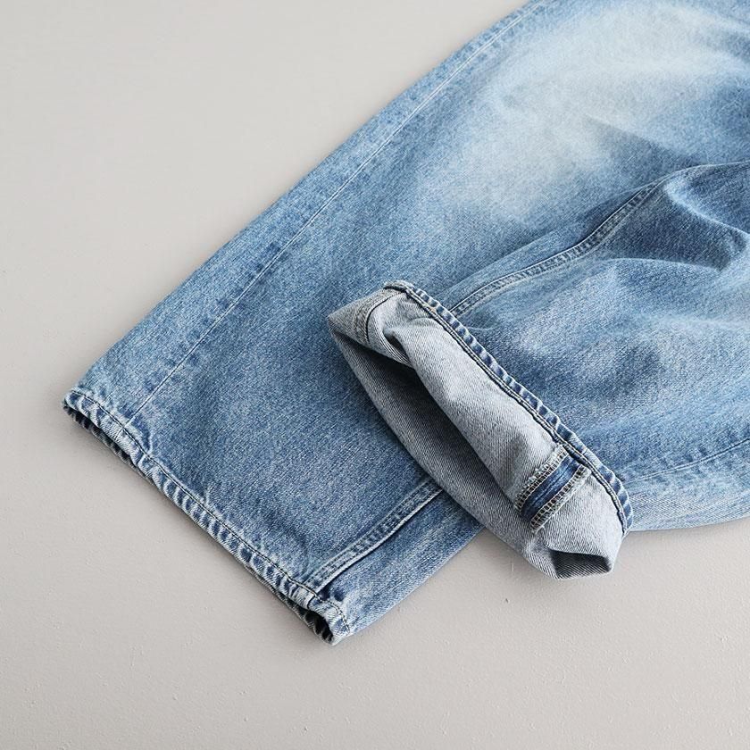 生地は12ozのデニムを使用。ほどよい厚みながら柔らかく、デニム特有のごわつきが少ないのが特徴です。洗いを重ねて表現した絶妙な色落ち具合も魅力で、オールシーズン着用していただけます。