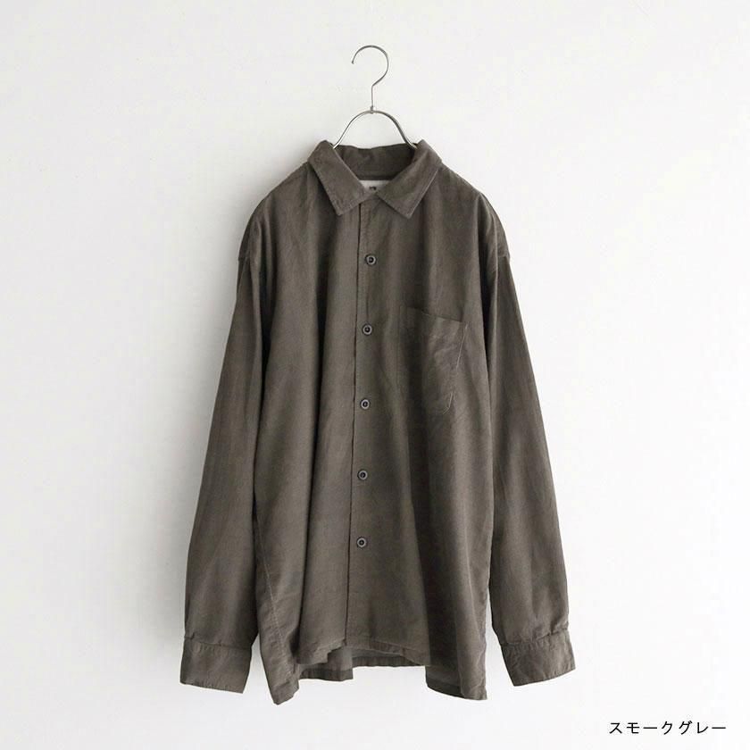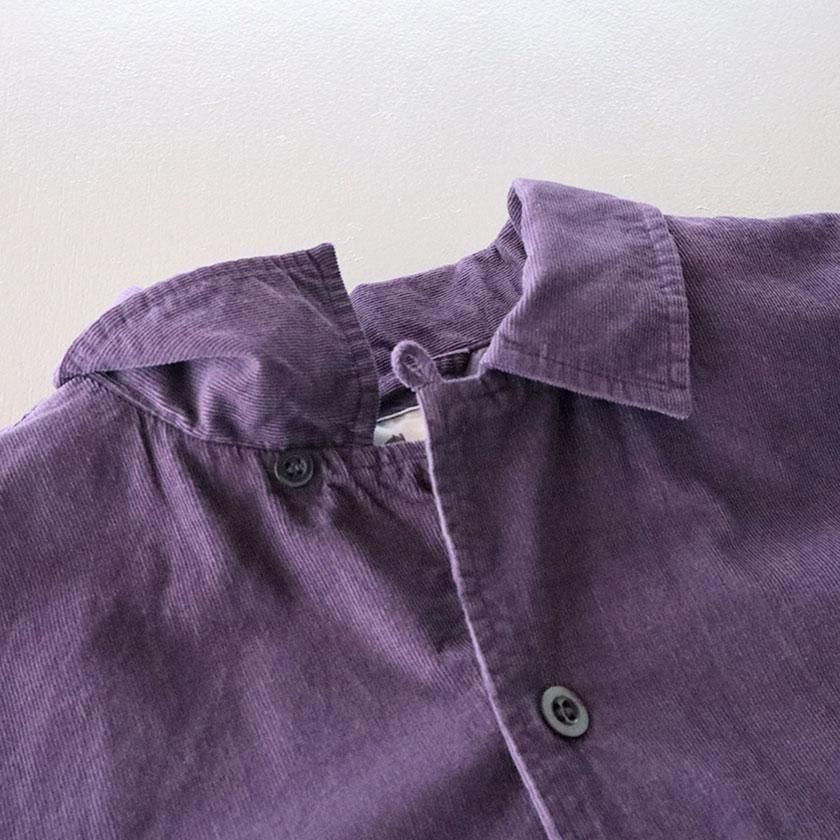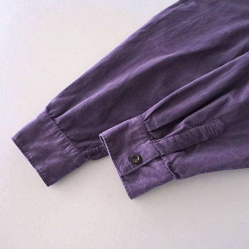 素材には26ウェルの細畝のコーデュロイ素材を使用。なめらかな表面感が上品で落ち着いた印象を与え、野暮ったくならずスッキリとした印象でご着用いただけます。製品染めで表現したユーズド感のあるカラーと柔らかな肌触りも魅力の一つ。ヨーク裏にはさらりと滑りのいいコットン100%の裏地が付いています。