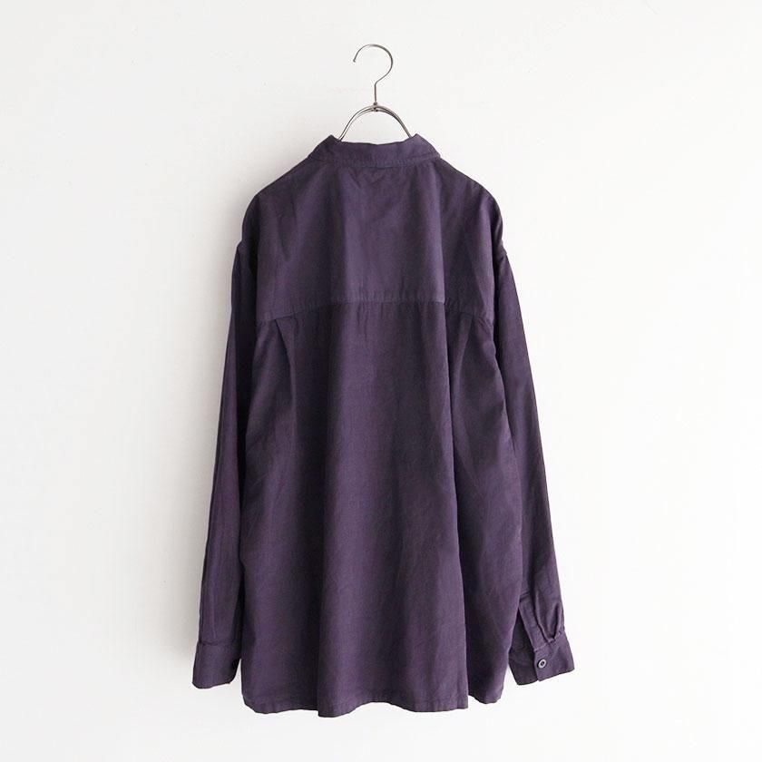 全体的にゆったりとしたリラックス感のあるシルエット。第一ボタンはループボタンになっており、首元から留めるときちんと感のあるレギュラーカラーに。第一ボタンを外すとオープンカラーとしてほどよく抜け感を出したラフな着こなしが叶います。大きめのボタンや左胸のパッチポケットもデザインのポイント。シンプルながらもワークウェアらしいディテールを散りばめて、こだわりを感じられる仕上がりになっています。