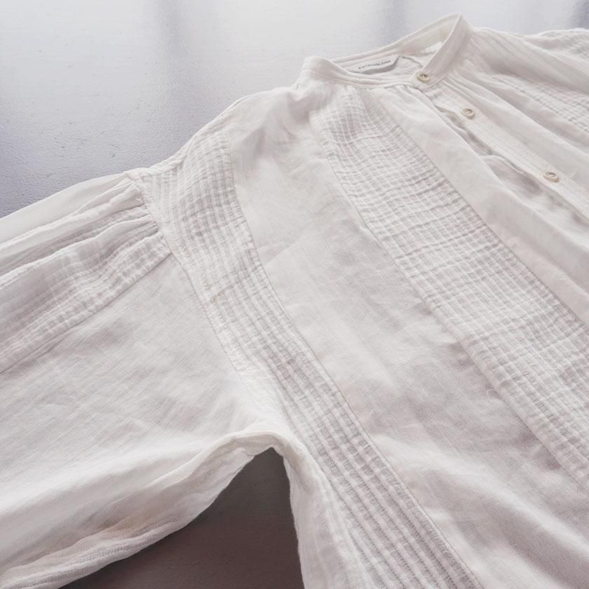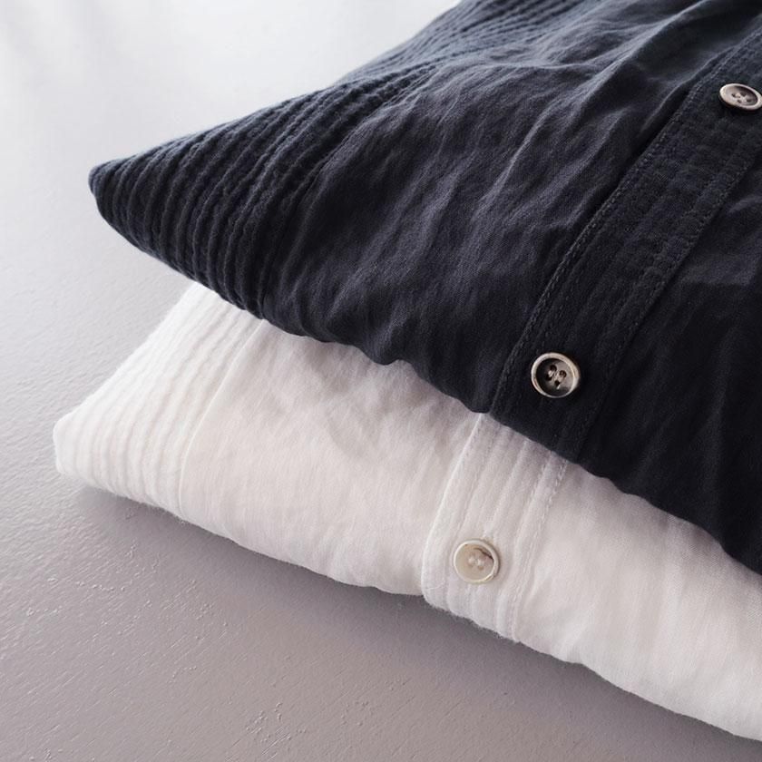 スウェットやニットと合わせてレイヤードコーデを楽しんだり、春夏は前を開けてTシャツの上に羽織っても◎一枚でもレイヤードでも、オールシーズン使える万能なブラウスです。